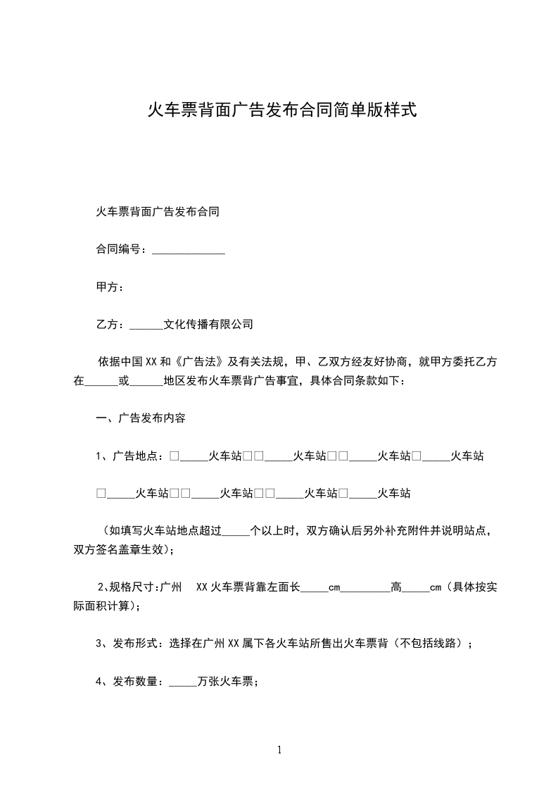 依据中国XX和《广告法》及有关法规,甲、乙双方经友好协商,就甲方委托乙方在______或______地区发布火车票背广告事宜,具体合同条款如下: