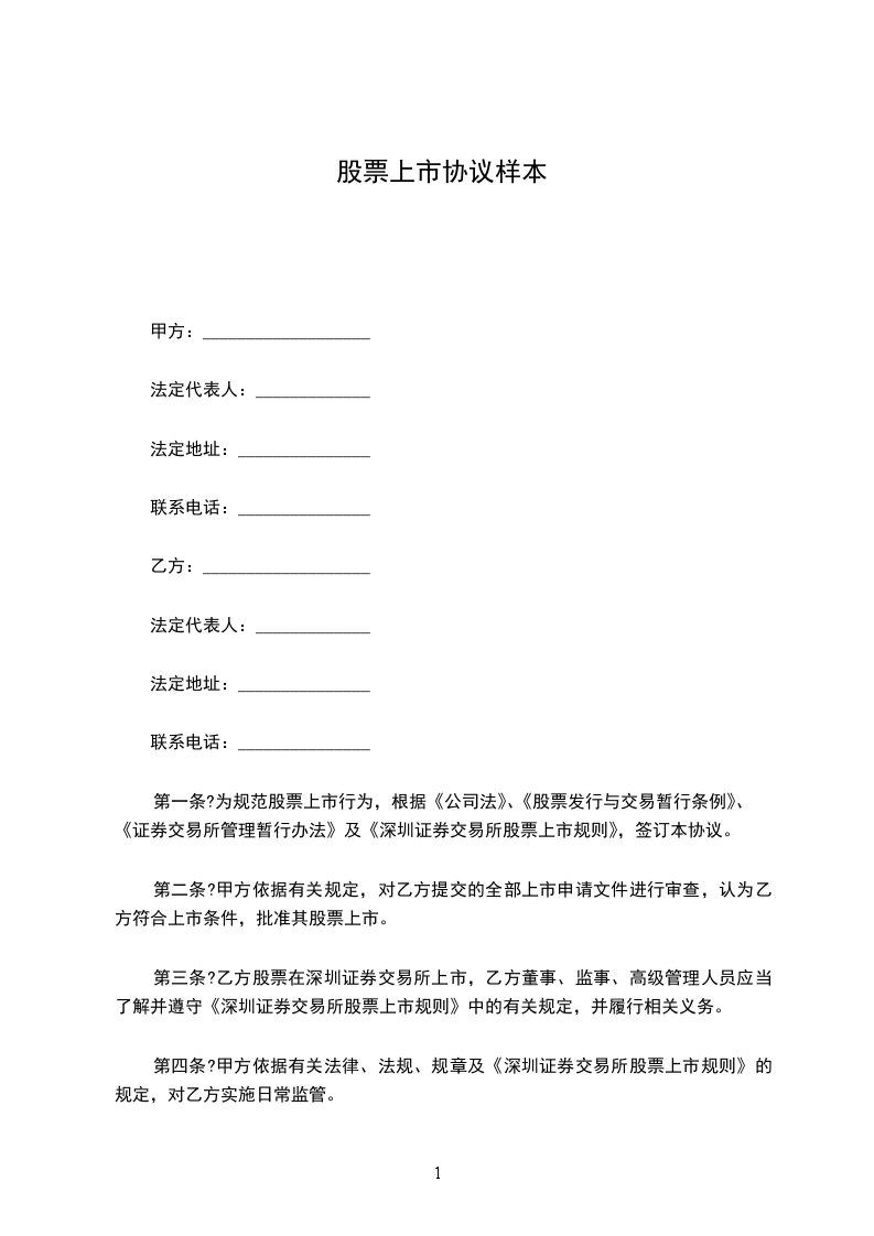 第一条?为规范股票上市行为,根据《公司法》、《股票发行与交易暂行条例》、《证券交易所管理暂行办法》及《深圳证券交易所股票上市规则》,签订本协议。