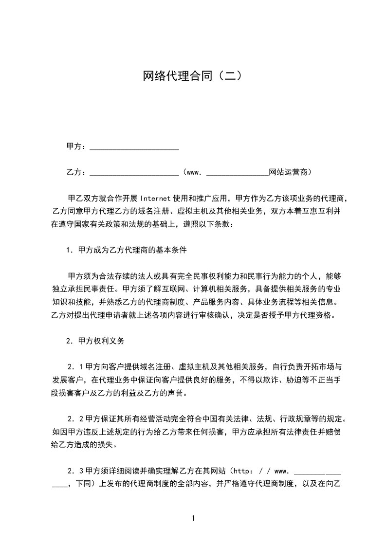 甲乙双方就合作开展Internet使用和推广应用,甲方作为乙方该项业务的代理商,乙方同意甲方代理乙方的域名注册、虚拟主机及其他相关业务,双方本着互惠互利并在遵守国家有关政策和法规的基础上,遵照以下条款:
