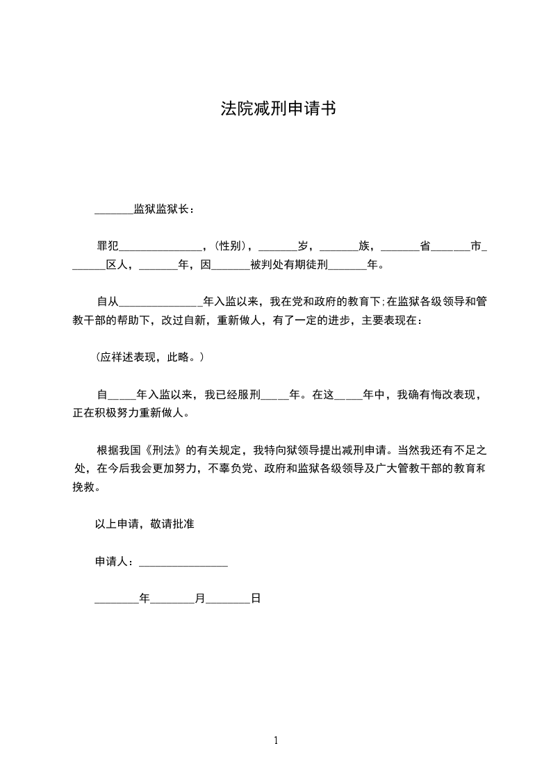 根据我国《刑法》的有关规定,我特向狱领导提出减刑申请。当然我还有不足之处,在今后我会更加努力,不辜负党、政府和监狱各级领导及广大管教干部的教育和挽救。