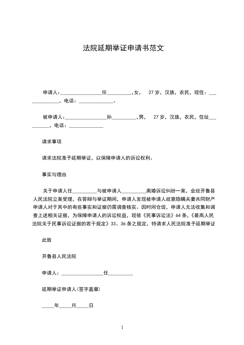 请求法院准予延期举证,以保障申请人的诉讼权利。