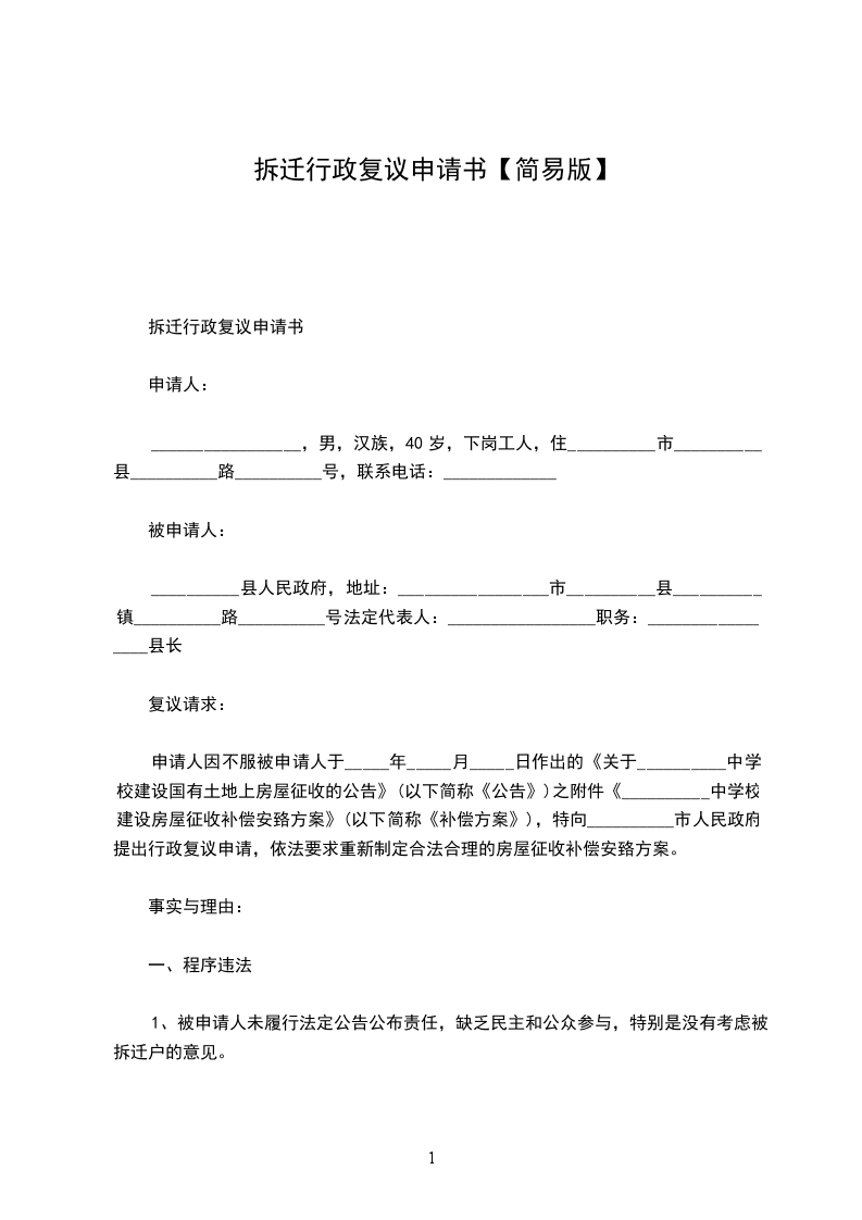 行政复议请求:_____________