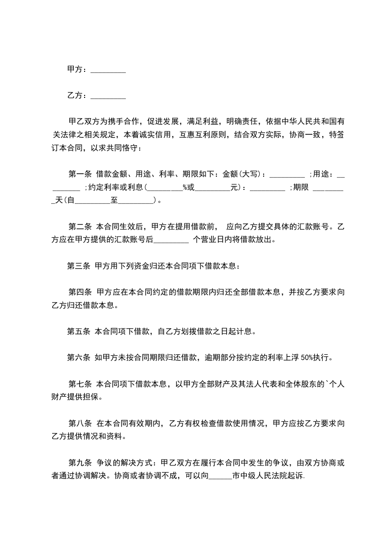 第一条甲方将贷款人民币_________元,发放给乙方,专用于帮助乙方创业。