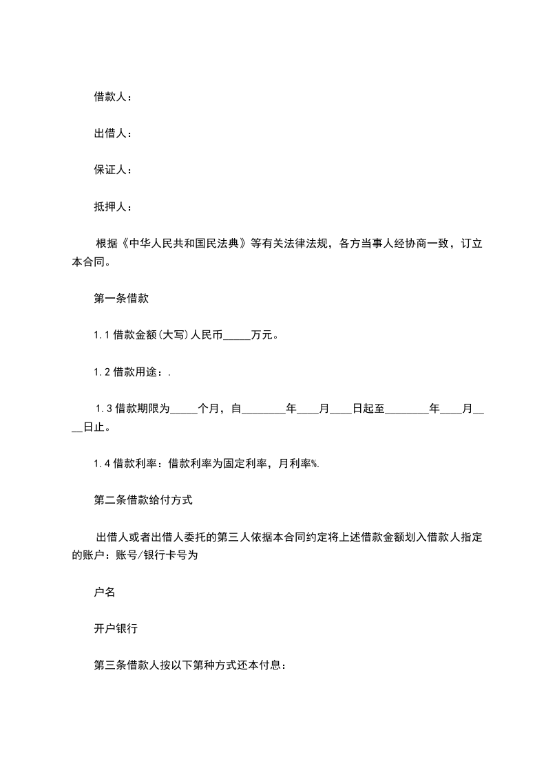 1.4借款利率:借款利率为固定利率,月利率%.