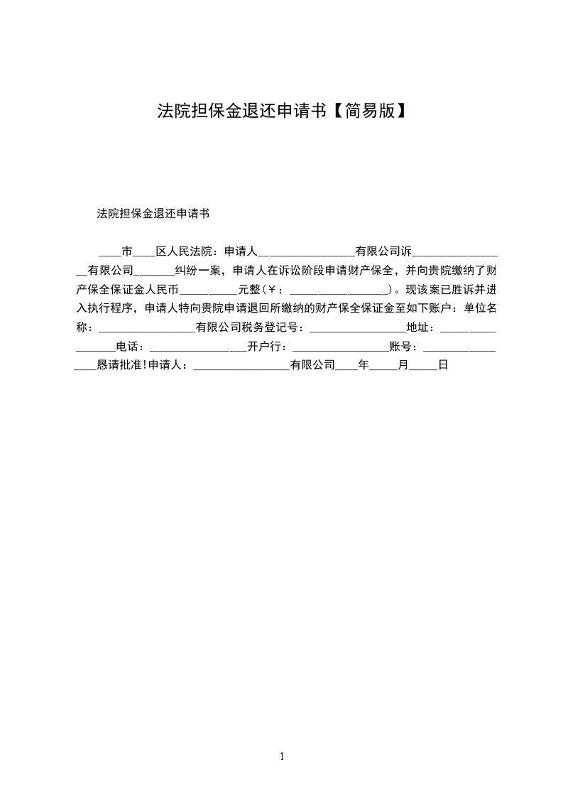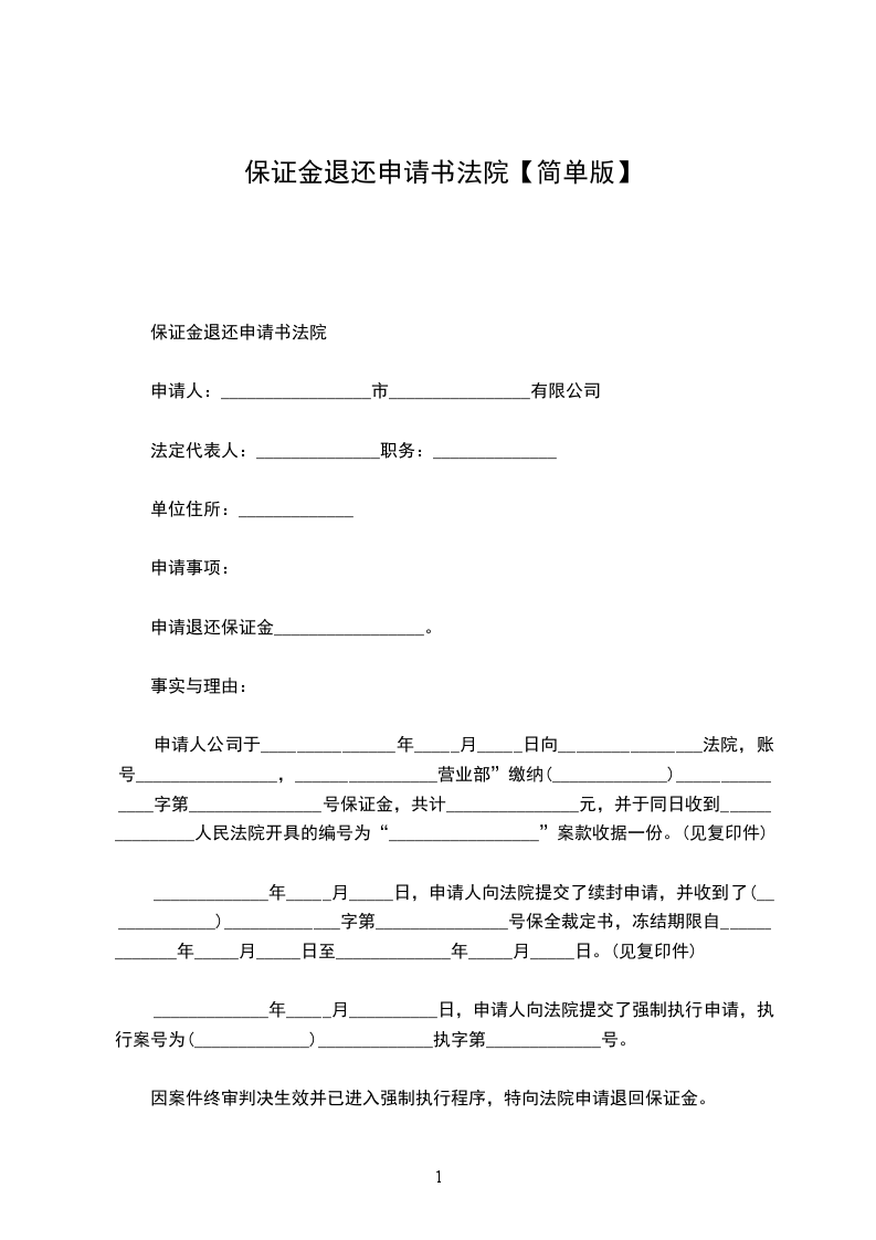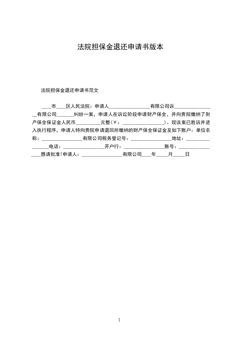 现该案已胜诉并进入执行程序,申请人特向贵院申请退回所缴纳的财产保全保证金至如下帐户: