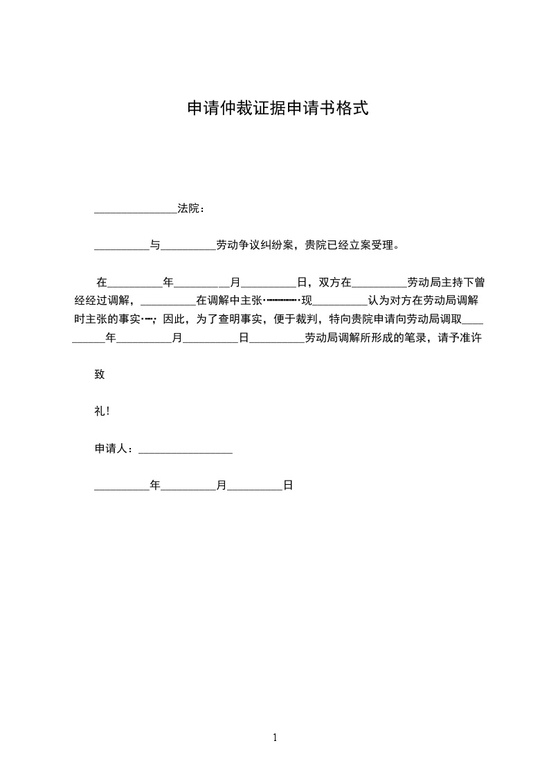 在__________年__________月__________日,双方在__________劳动局主持下曾经经过调解,__________在调解中主张………………现__________认为对方在劳动局调解时主张的事实……,因此,为了查明事实,便于裁判,特向贵院申请向劳动局调取__________年__________月__________日__________劳动局调解所形成的笔录,请予准许。