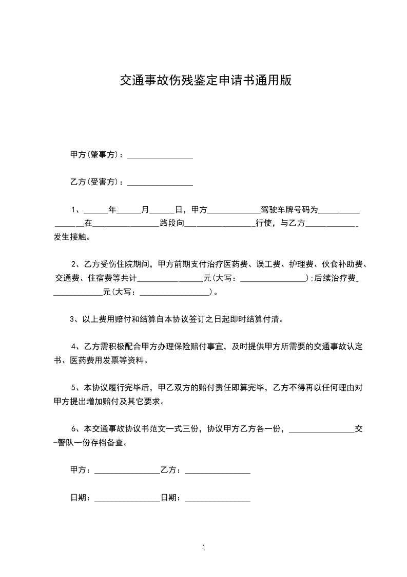 1、______年______月______日,甲方_____________驾驶车牌号码为_________________在________________路段向_________________行使,与乙方_____________发生接触。