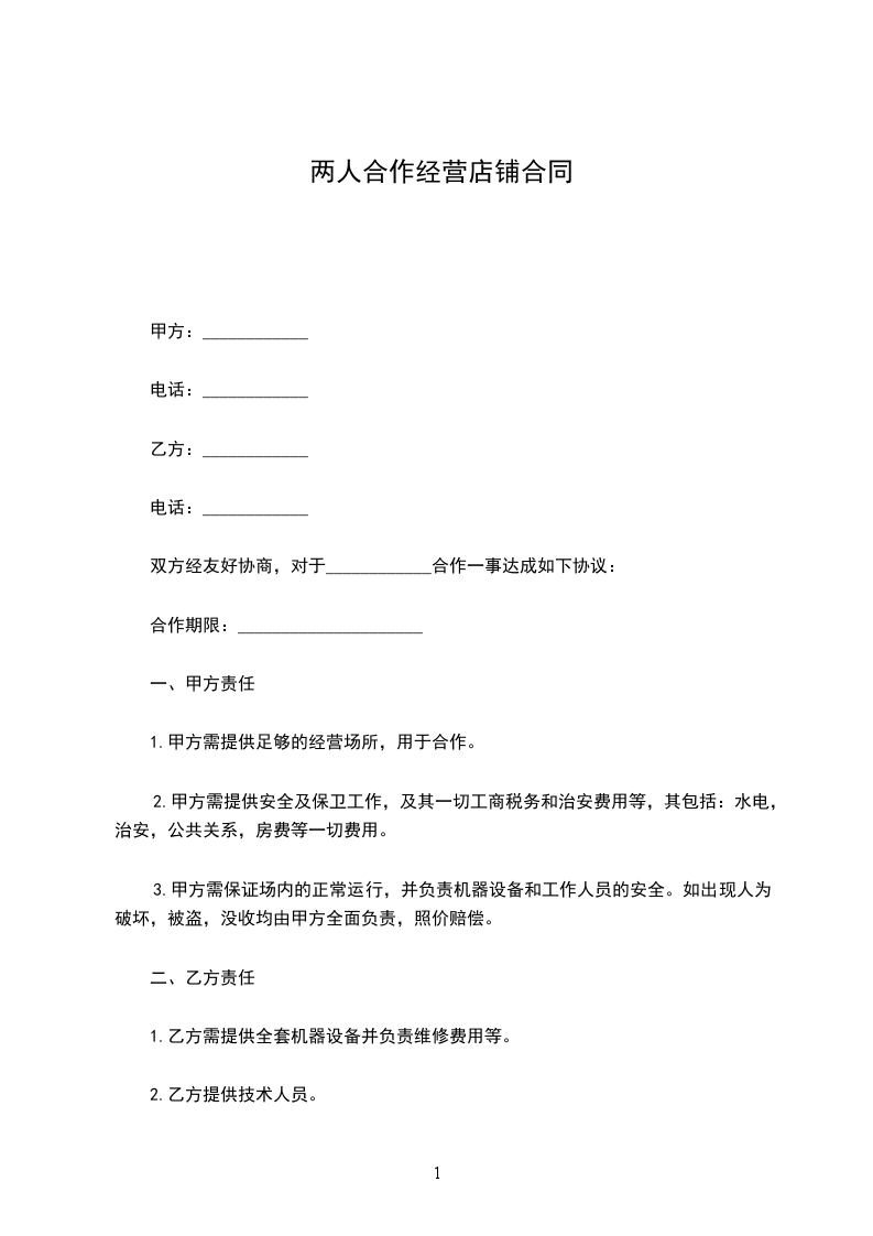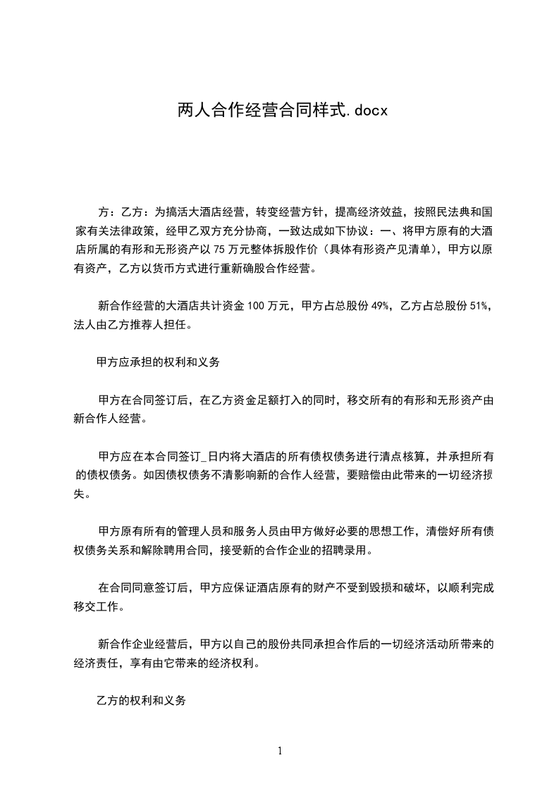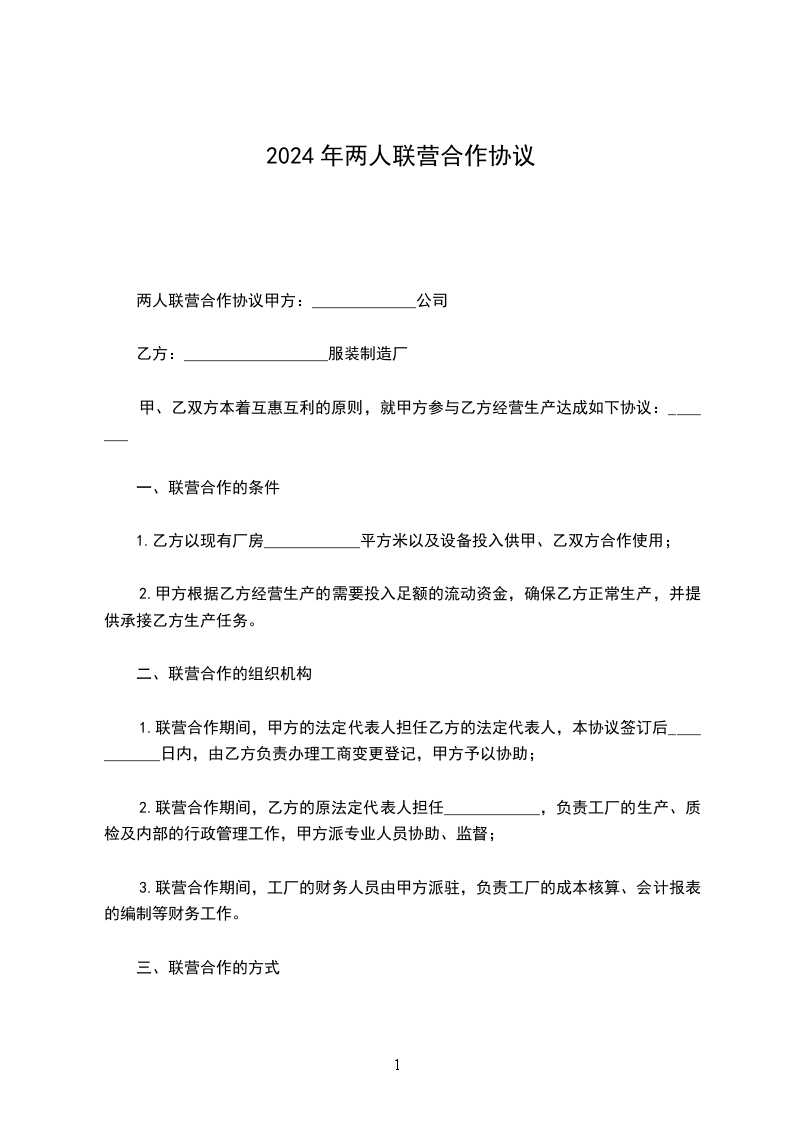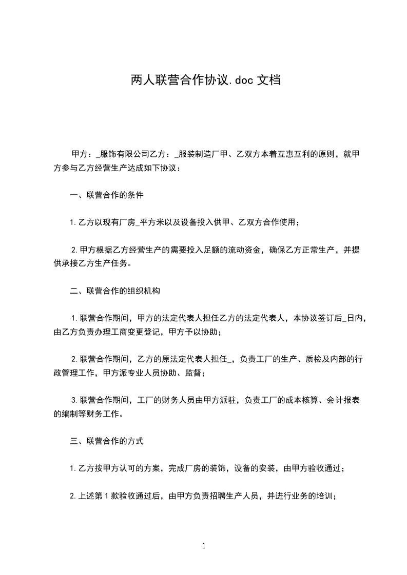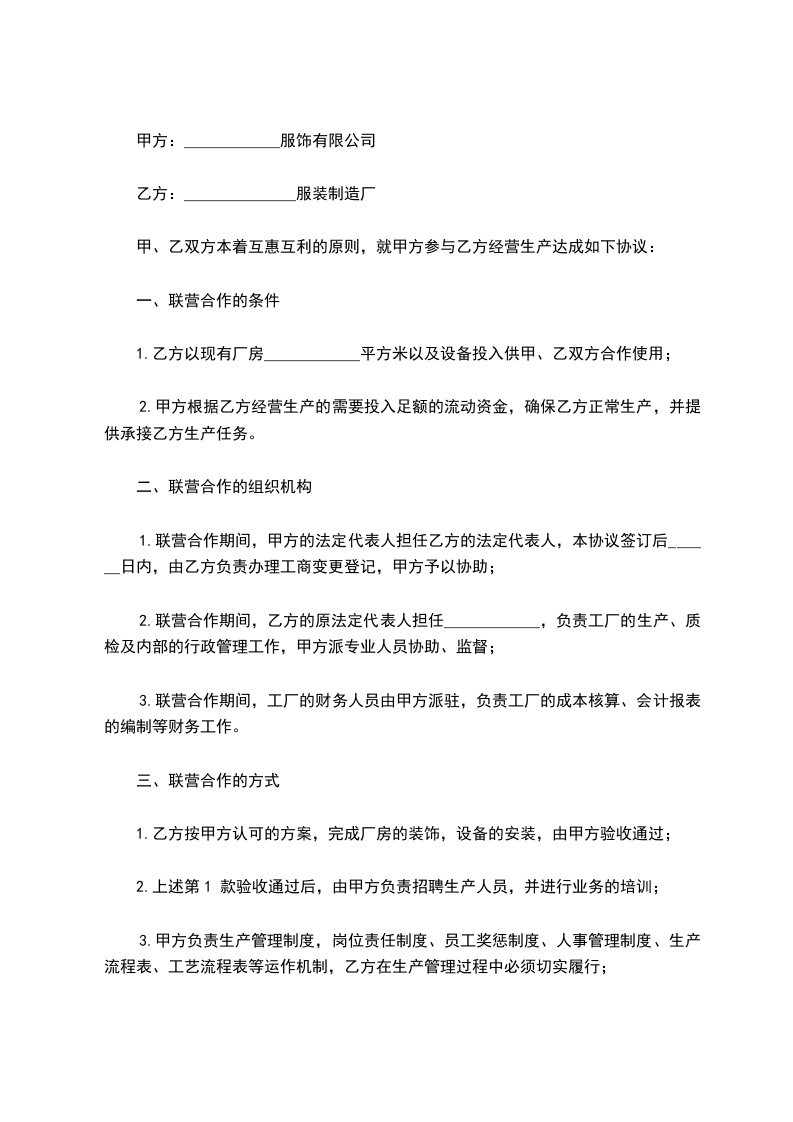 1.联营合作期间,甲方的法定代表人担任乙方的法定代表人,本协议签订后______日内,由乙方负责办理工商变更登记,甲方予以协助;