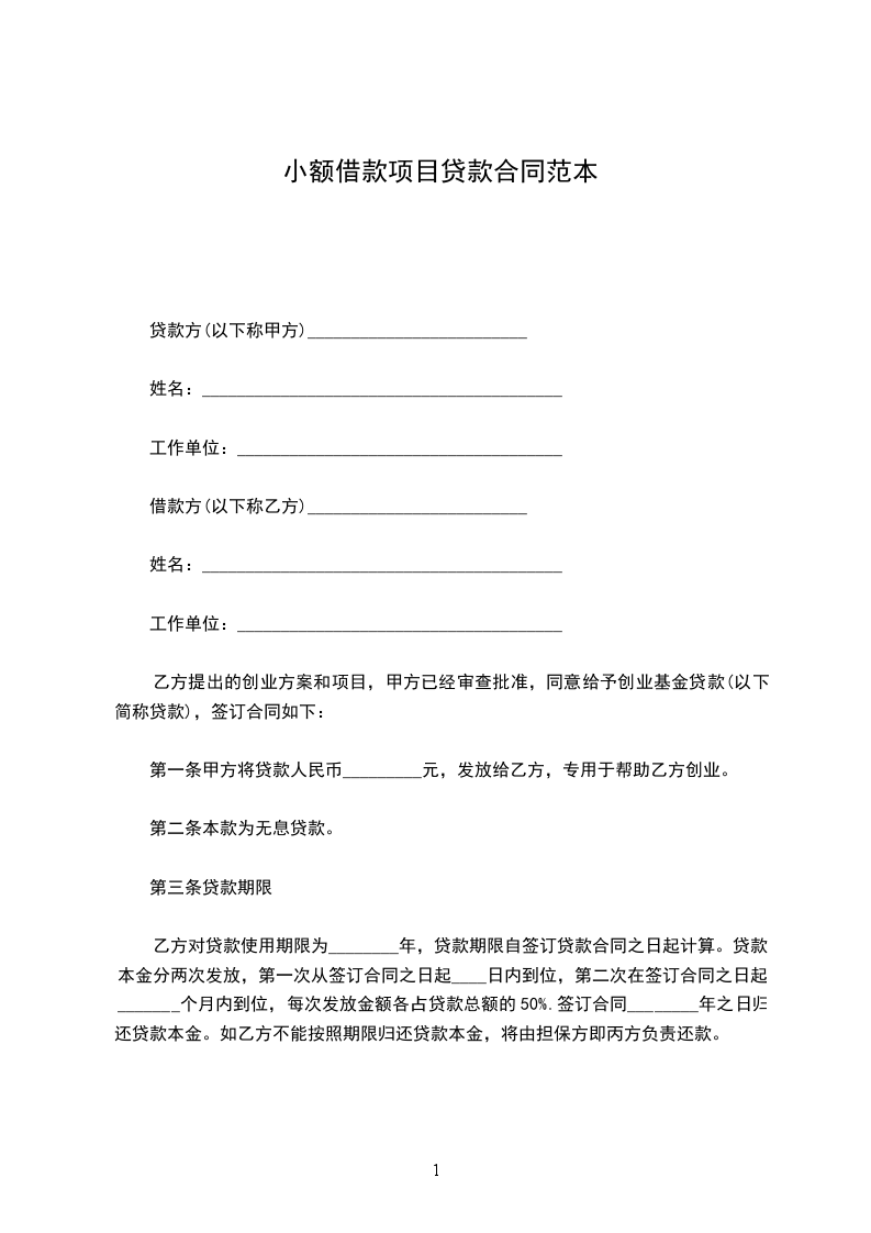 第一条甲方将贷款人民币_________元,发放给乙方,专用于帮助乙方创业。