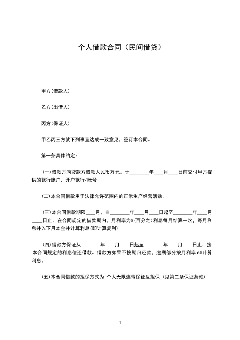(一)借款方向贷款方借款人民币_____万元。于________年____月____日前交付甲方提供的银行账户,开户银行/账号