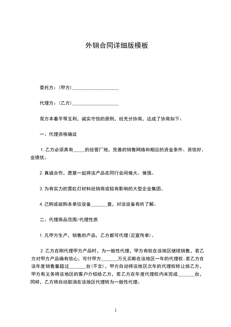 2.乙方在刚代理甲方产品时,为一般性代理,甲方有权在该地区继续销售,若乙方对甲方产品确有信心,可付甲方_______万元买断在该地区一年的代理权;若乙方在该年度销售量超过_______台(不含),甲方自动将该地区次年的代理权转让给乙方,甲方有义务将该地区的客户介绍给乙方,若乙方在年度代理权内未完成_______台,同样,乙方将自动取消在该地区代理转为一般性代理。