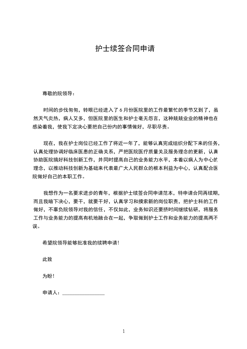 本人于20__________年11月6日与公司签订为期一年的劳动合同,一年来我在领导及各位同事的关心与帮助下,严格要求自己,认真完成自己的本职工作,各方面有了较大的进步。现合同到期在即,经本人考虑,决定申请续订劳动合同。现将日常的工作情况总结如下:
