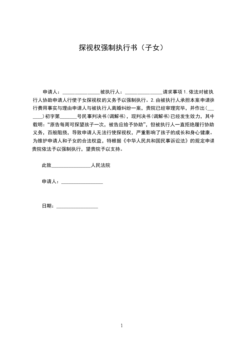 1.依法对被执行人协助申请人行使子女探视权的义务予以强制执行。