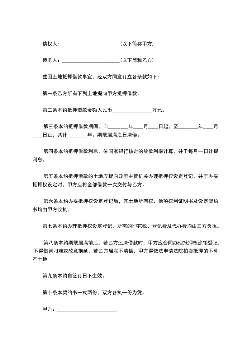 兹因土地抵押借款事宜,经双方同意订立各条款如下: