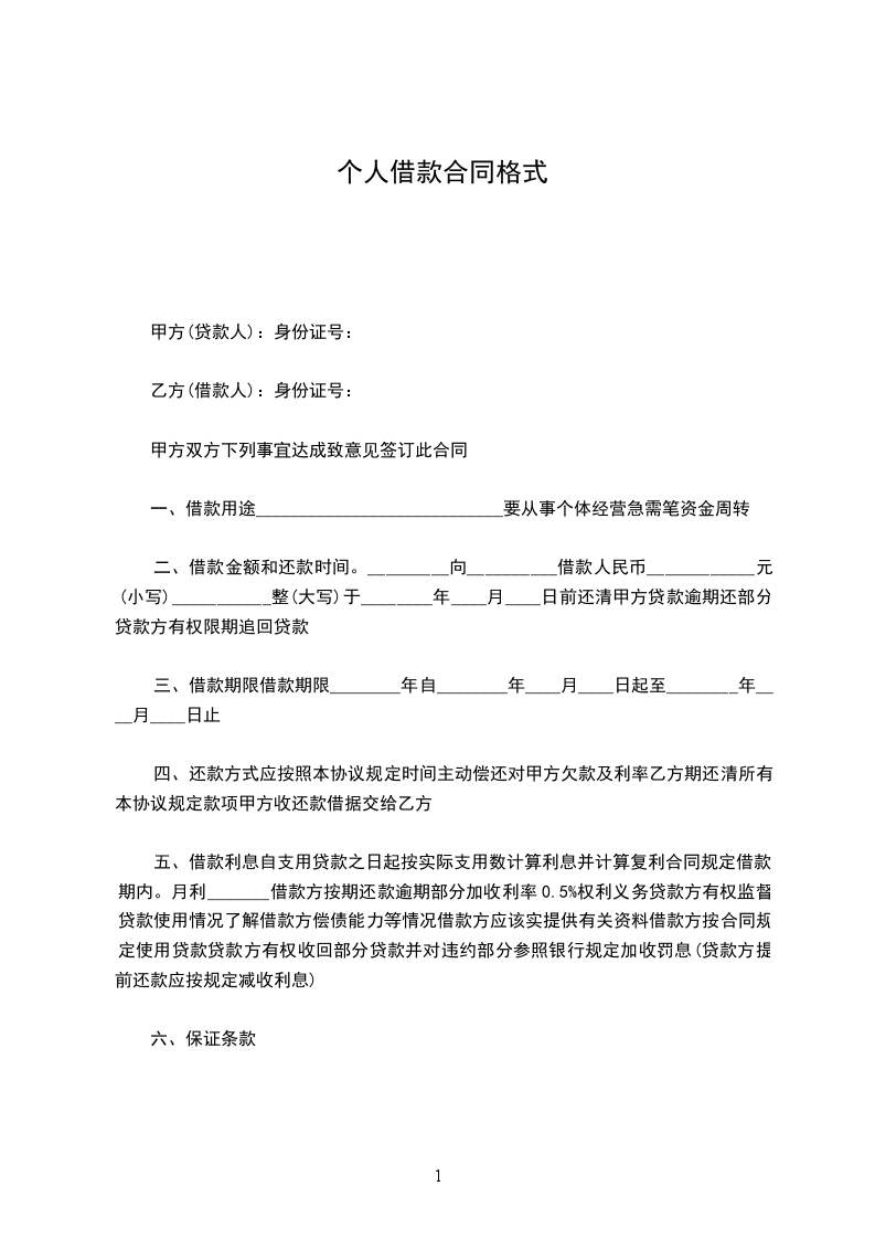 乙方(借款人):身份证号: