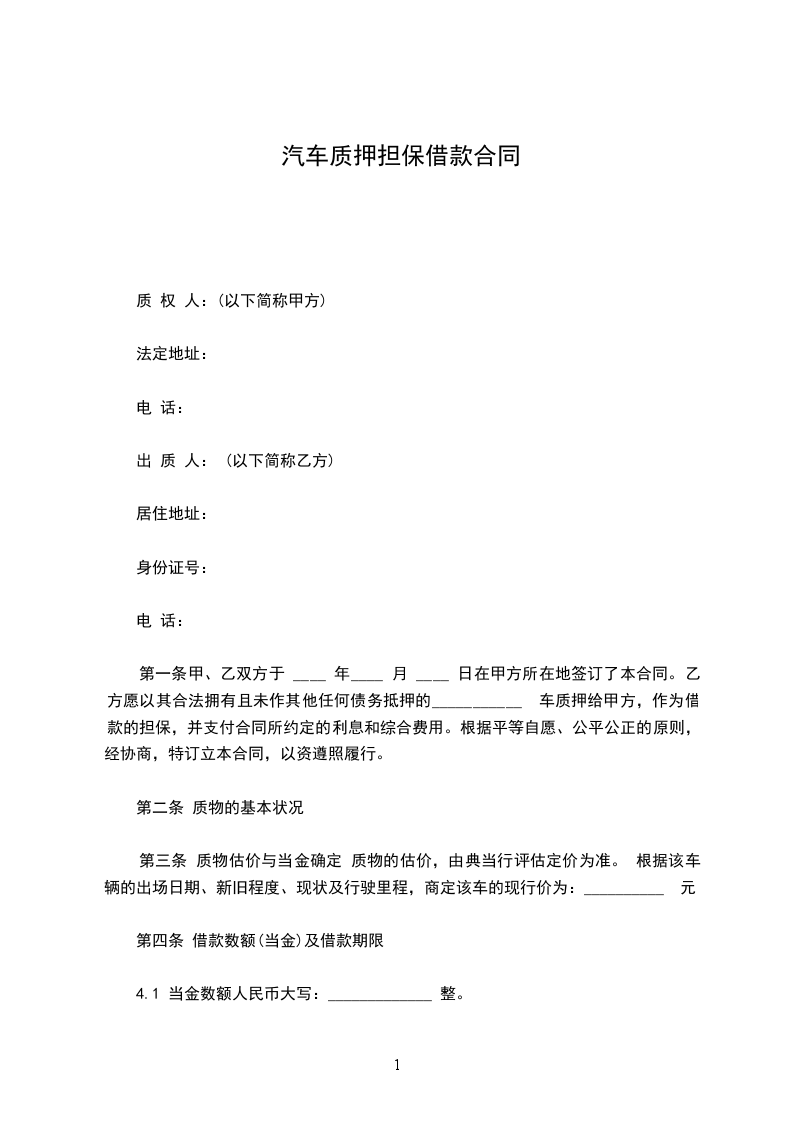 4.质物未设定其他担保,所有权无争议。