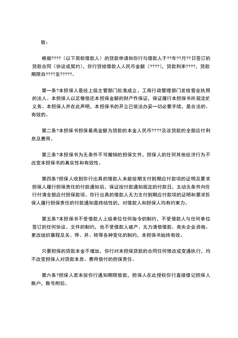 第二条?本担保书担保最高金额为贷款的本金人民币????及该贷款的全部应付利息及费用。