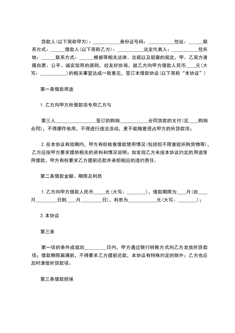第一条本合同规定________年贷款额为人民币(大写)____万元,用于____。