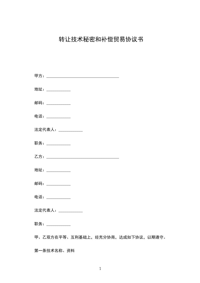 第一条__________贸易有限公司(以下简称甲方)和_______________公司(以下简称乙方),经过友好协商,同意合资经营__________厂。兹因合资经营条件尚未成熟,双方将以补偿贸易进行合作生产并以此作为双方合作的第一步,其条件如下: