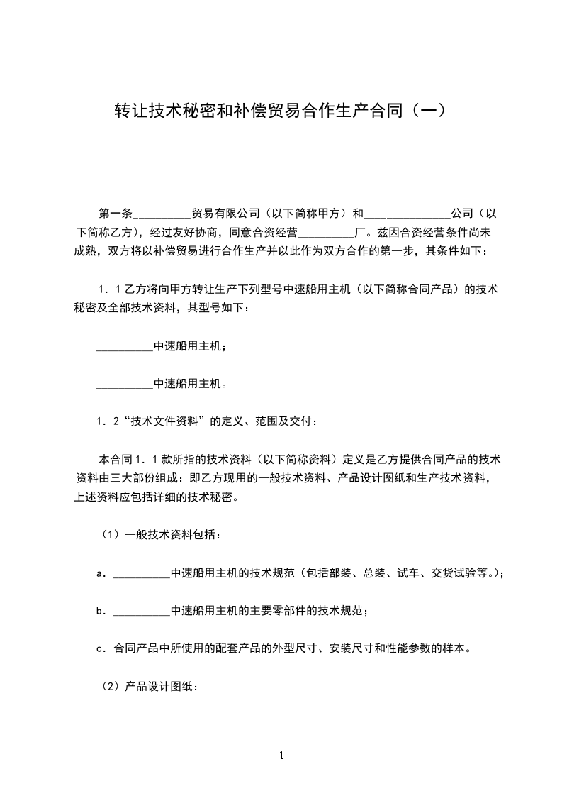 1.1乙方将向甲方转让生产下列型号中速船用主机(以下简称合同产品)的技术秘密及全部技术资料,其型号如下: