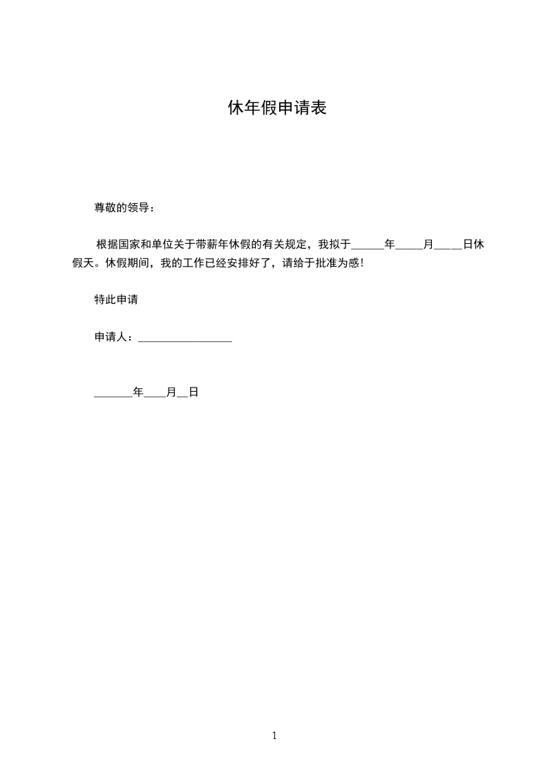 根据国家和单位关于带薪年休假的有关规定,我拟于______年_____月_____日休假天。休假期间,我的工作已经安排好了,请给于批准为感!