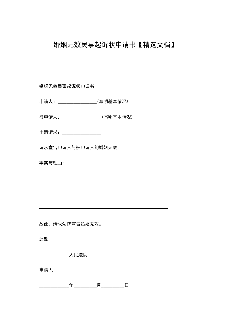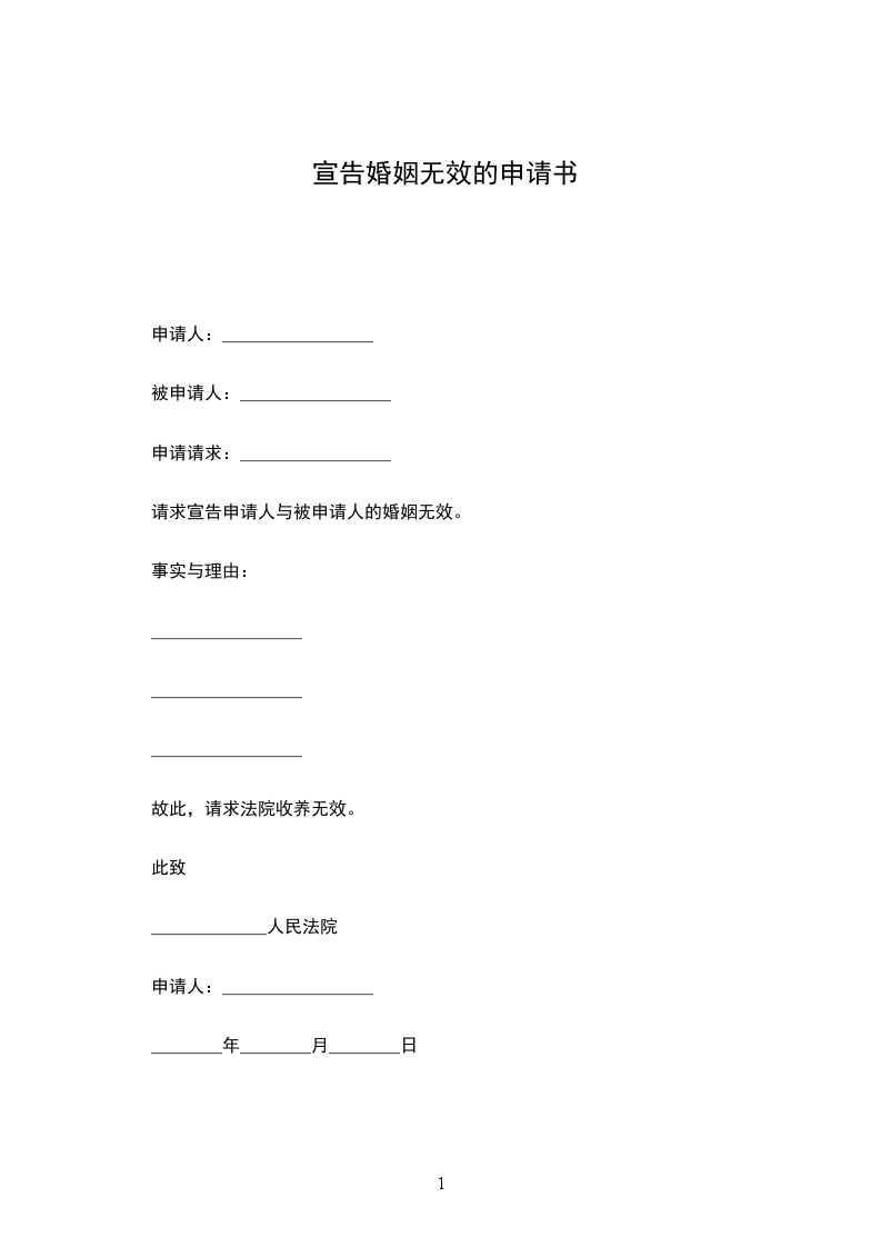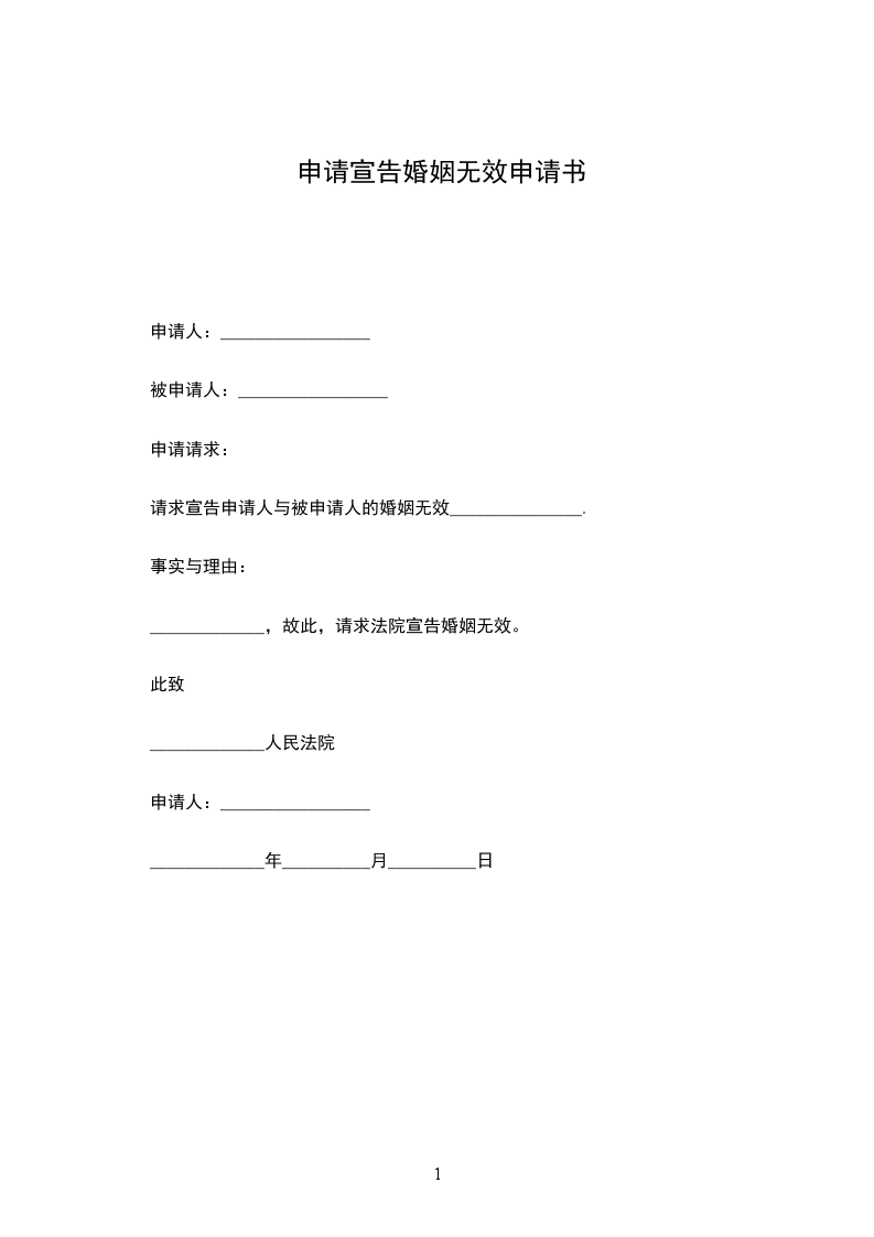 申请请求:请求宣告申请人与被申请人的婚姻无效。