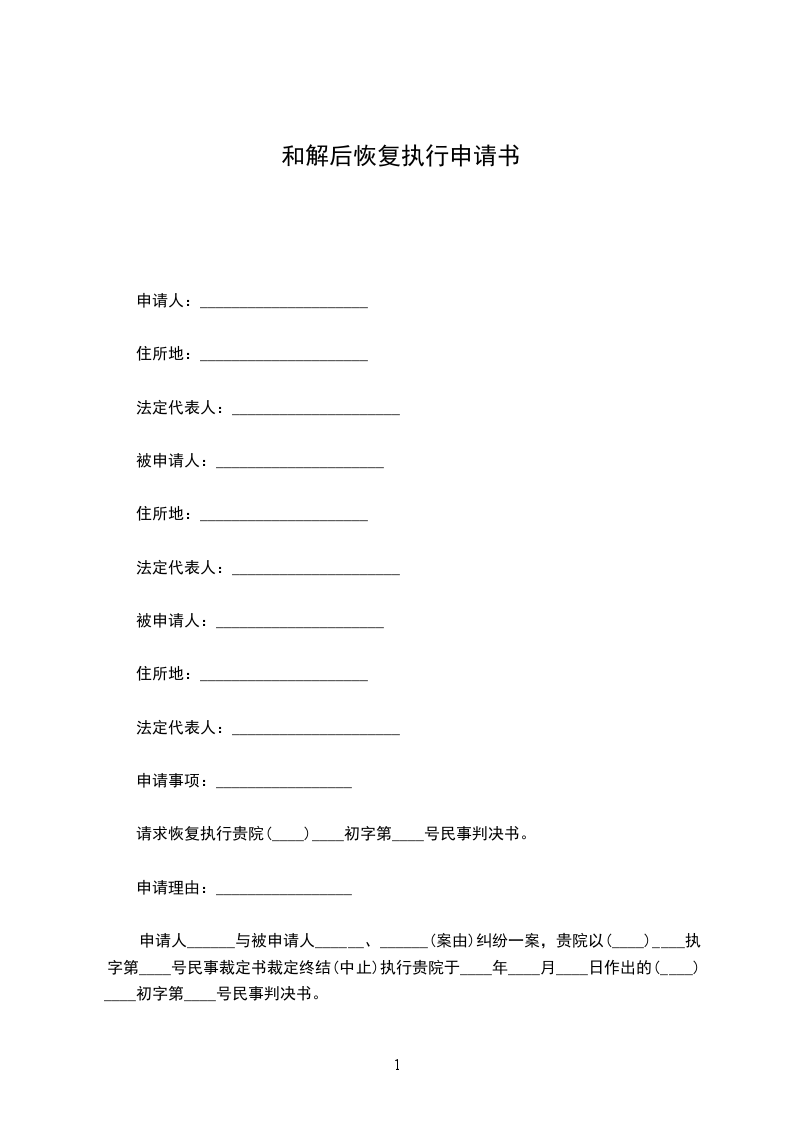 请求恢复执行贵院(____)____初字第____号民事判决书。