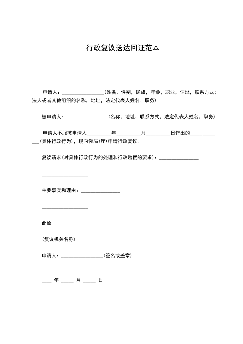 申请人不服被申请人__________年__________月__________日作出的_____________(具体行政行为),现向你局(厅)申请行政复议。
