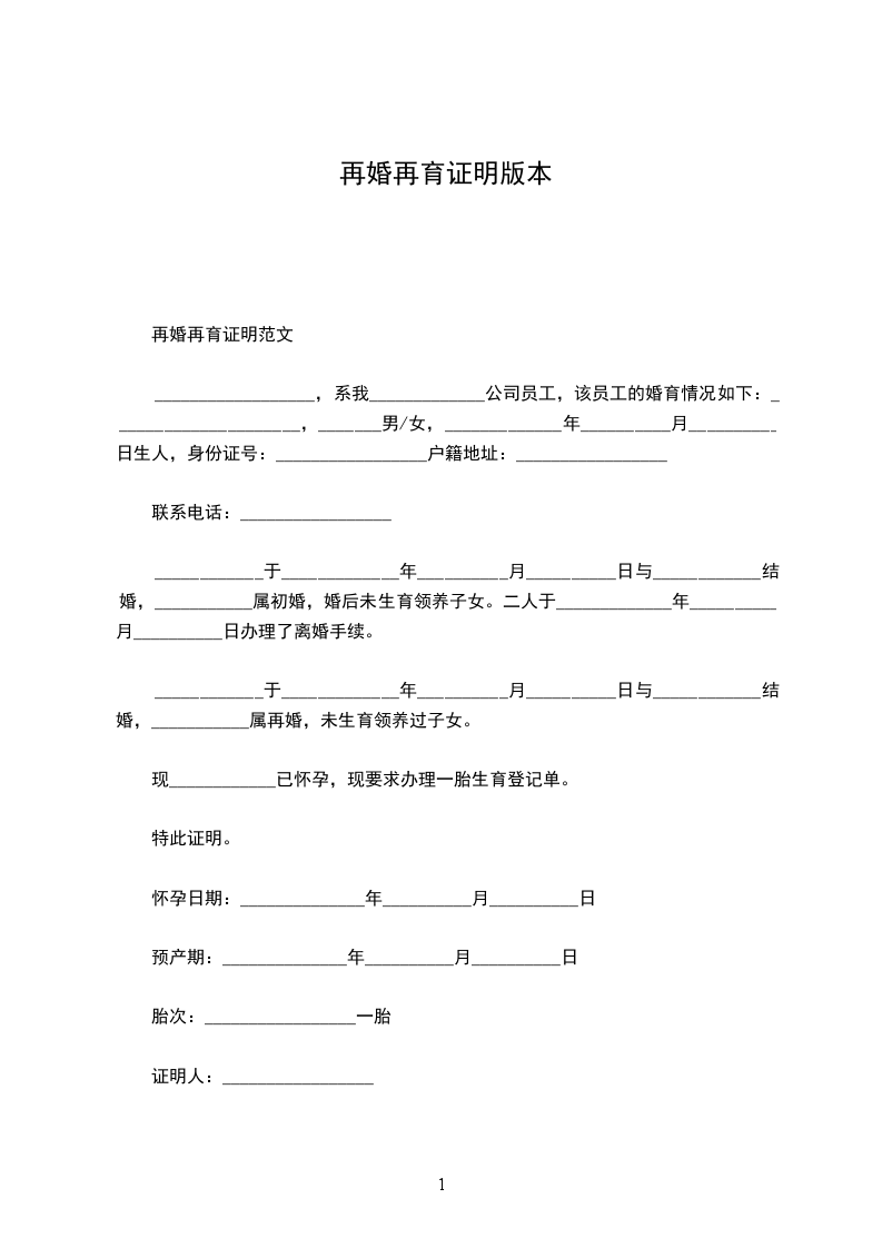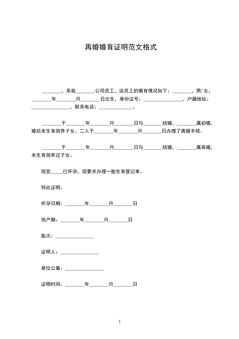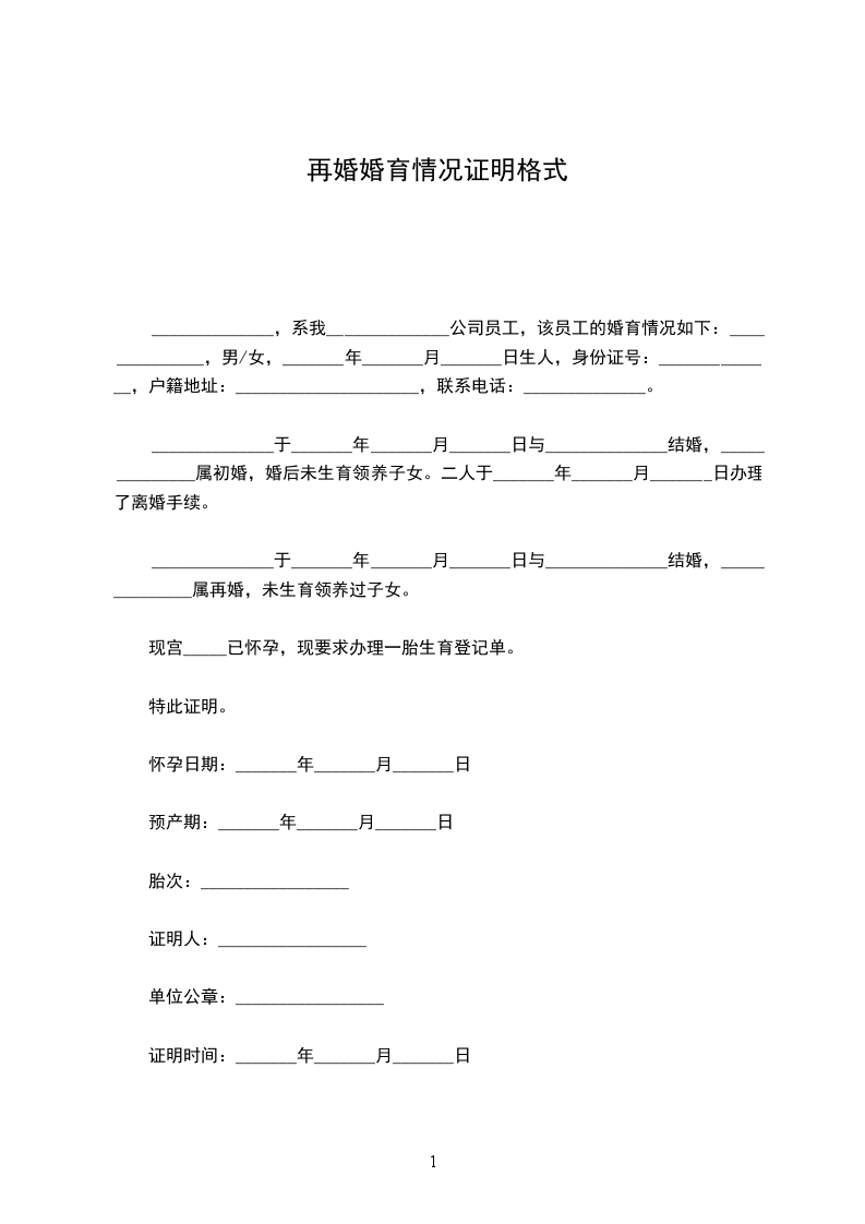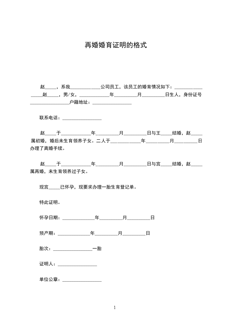 赵_____,系我_____________公司员工,该员工的婚育情况如下:_________________赵_____,男/女,_____________年__________月__________日生人,身份证号:_________________户籍地址:_________________