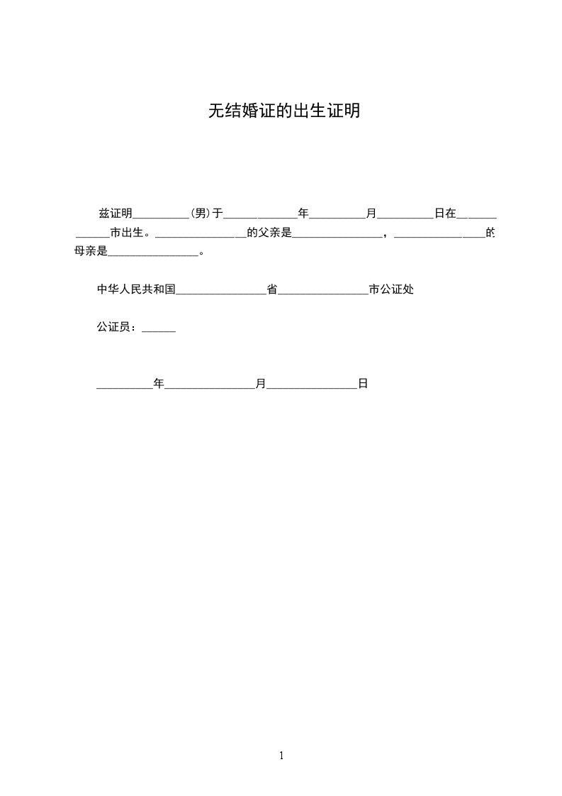 兹证明__________(男)于_____________年__________月__________日在_____________市出生。________________的父亲是________________,________________的母亲是________________。