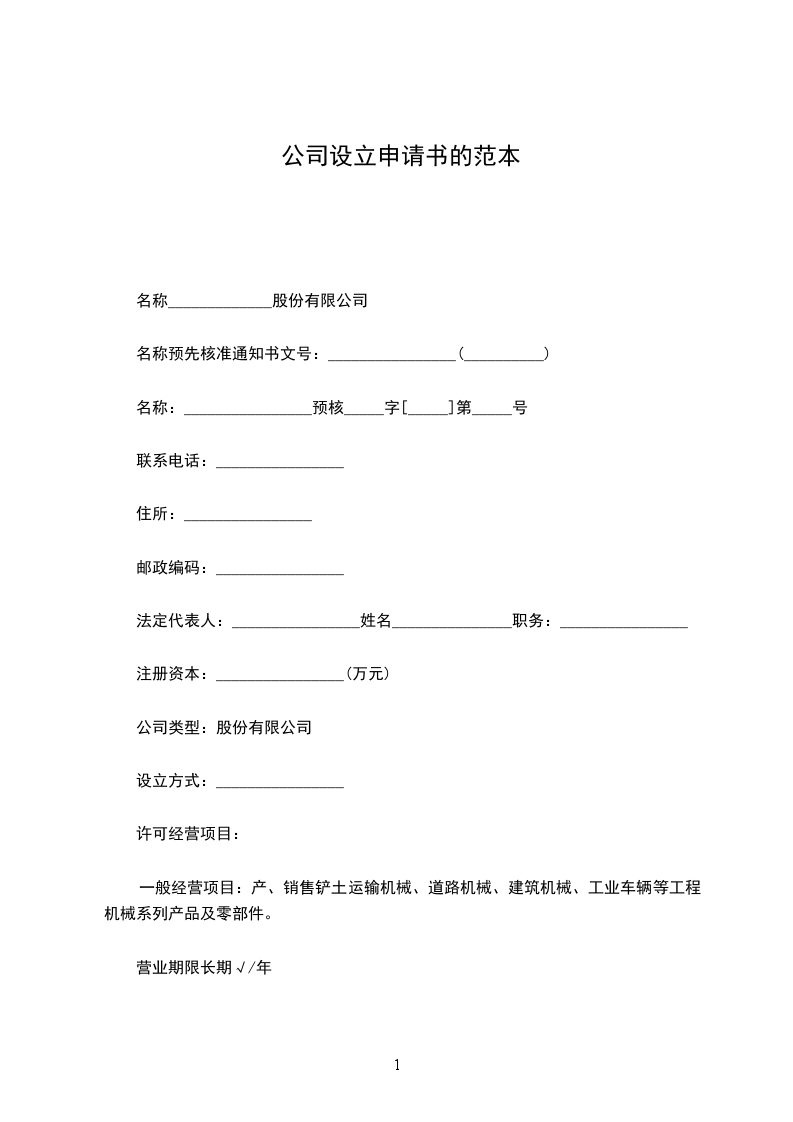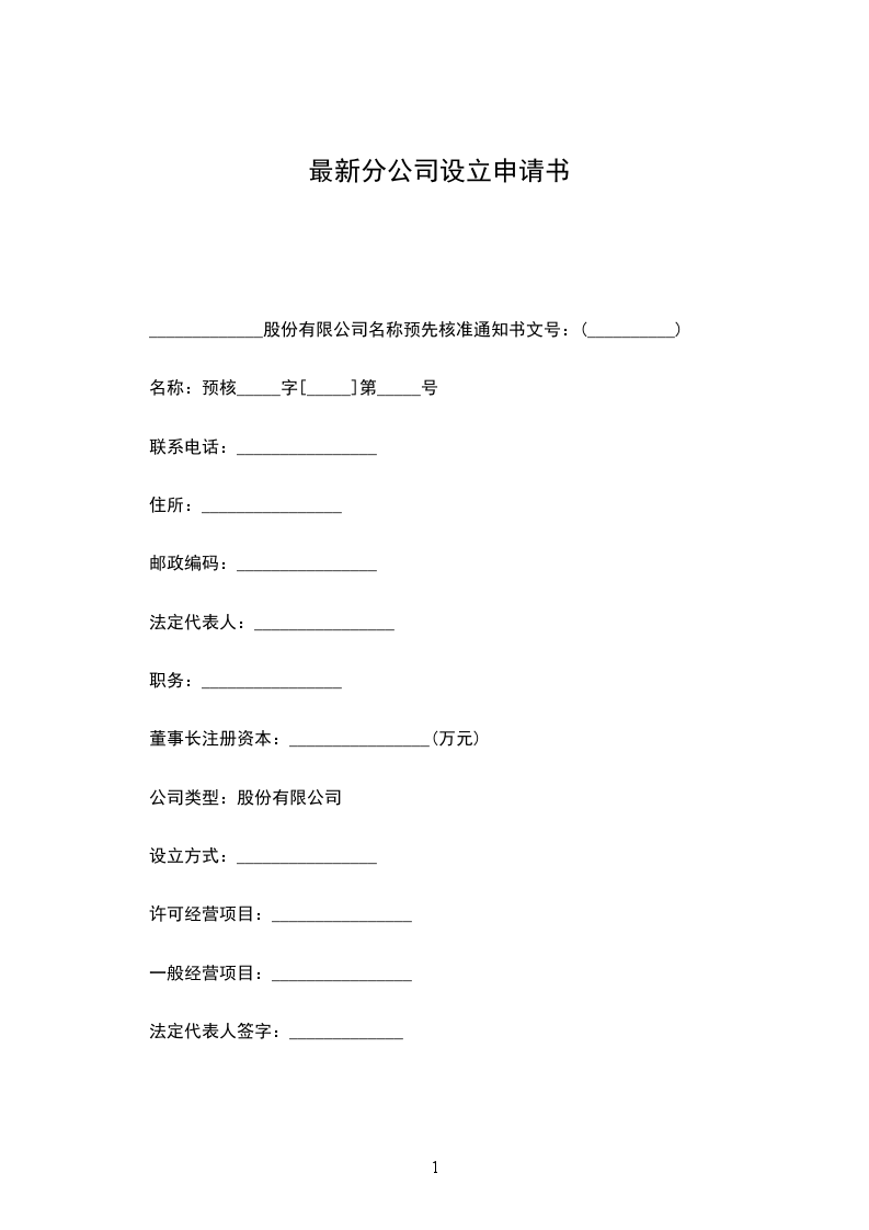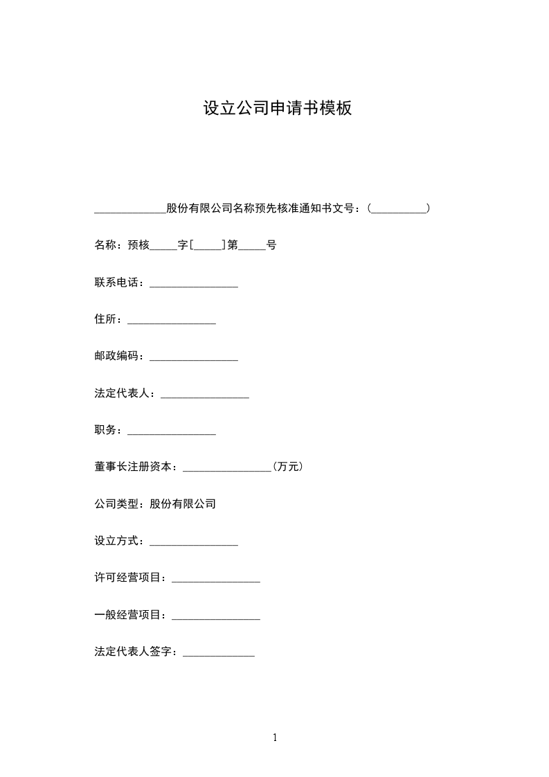 名称预先核准通知书文号:________________(__________)