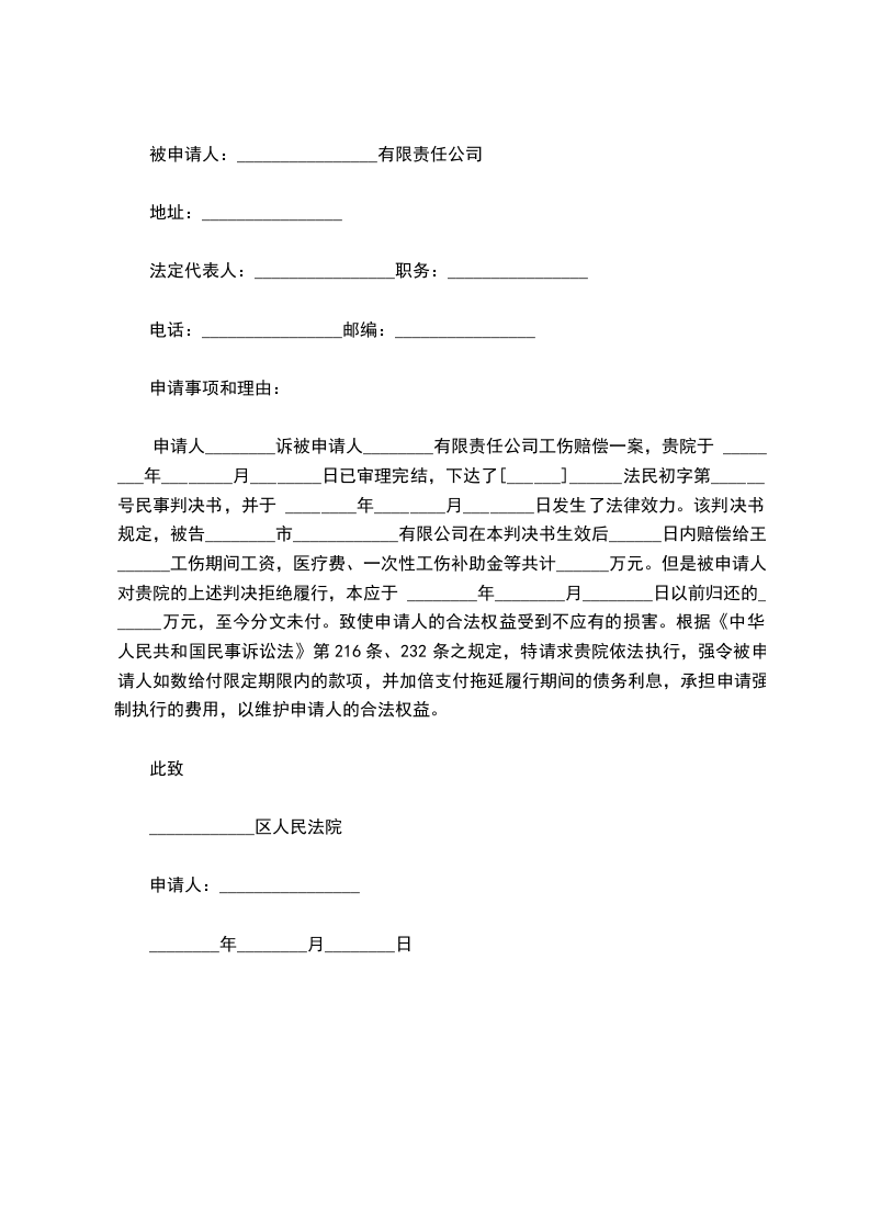 事实及理由:______________公司于_______________年__________月__________日聘请申请人_____________到该公司从事_________________工作。_______________于__________年_____月__________日在________________工作过程中,因_________________导致___________________,造成申请人__________受伤,经送人民医院检查治疗诊断为:_____________。