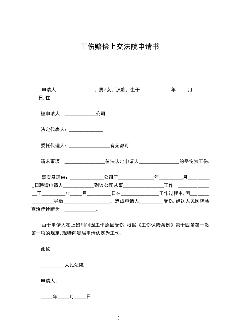 请求事项:_________________依法认定申请人_________________的受伤为工伤.