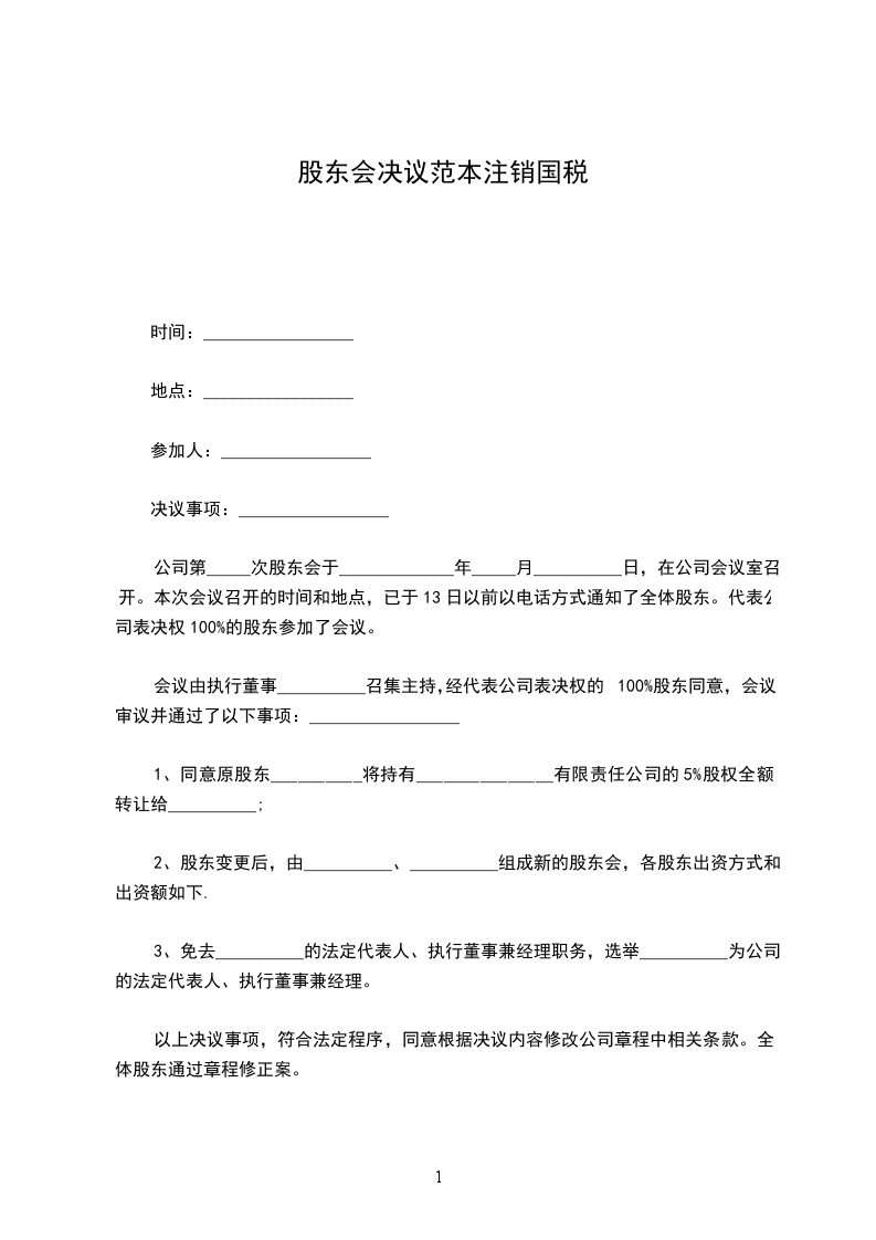 1、同意原股东__________将持有_______________有限责任公司的5%股权全额转让给__________;
