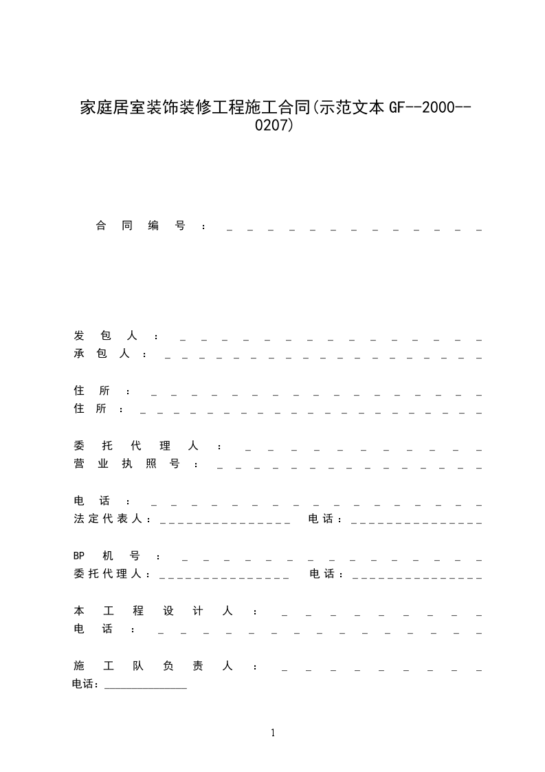 1.5 合同价款:本合同工程造价为(大写):元(详见附表3:家庭居室装饰装修工程报价单)。