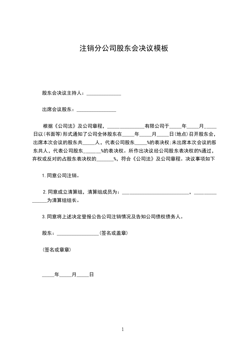 _____________年__________月__________日股东会决议主持人:______________