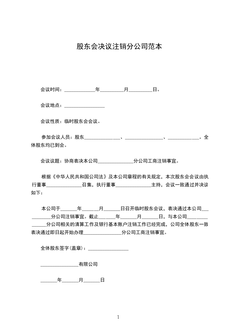 根据《公司法》及公司章程,_______________有限公司于_____年_____月_____日以(书面等)形式通知了公司全体股东在_____年_____月_____日(地点)召开股东会,出席本次会议的股东共_____人,代表公司股东_____%的表决权;未出席本次会议的股东共人,代表公司股东%的表决权。所作出决议经公司股东表决权的_____%通过,弃权或反对的占股东表决权的_____%,符合《公司法》及公司章程。决议事项如下: