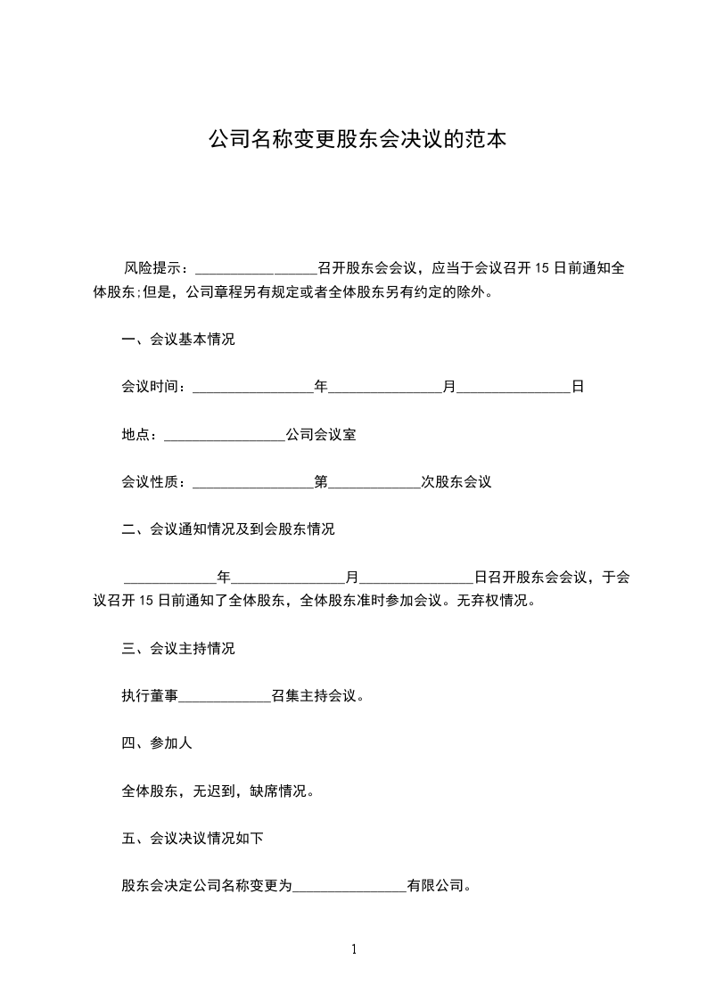 股东会决定公司名称变更为________________有限公司。