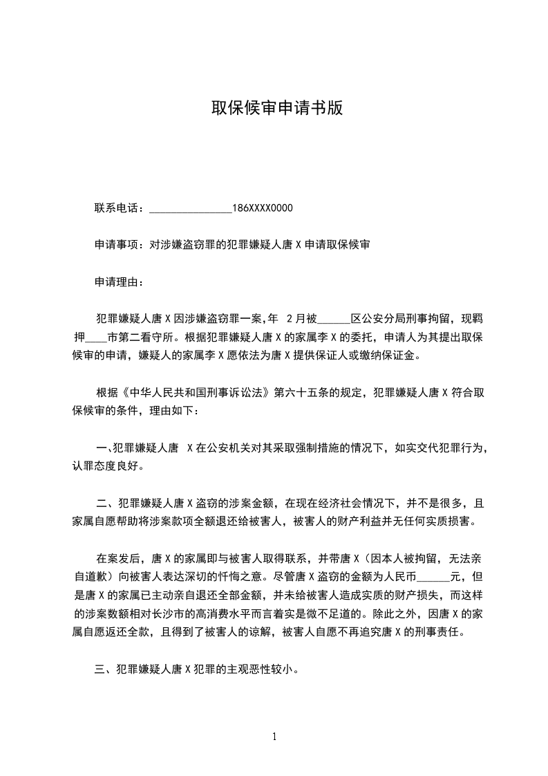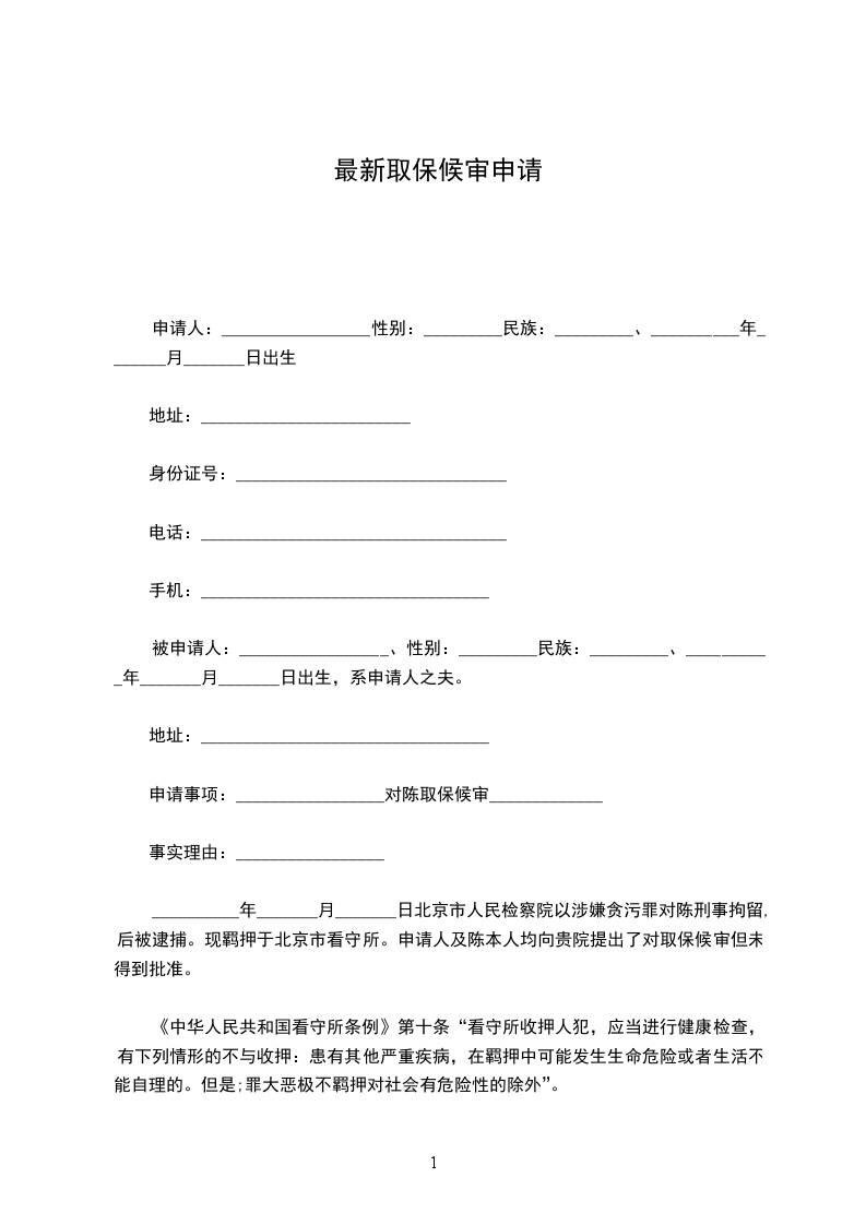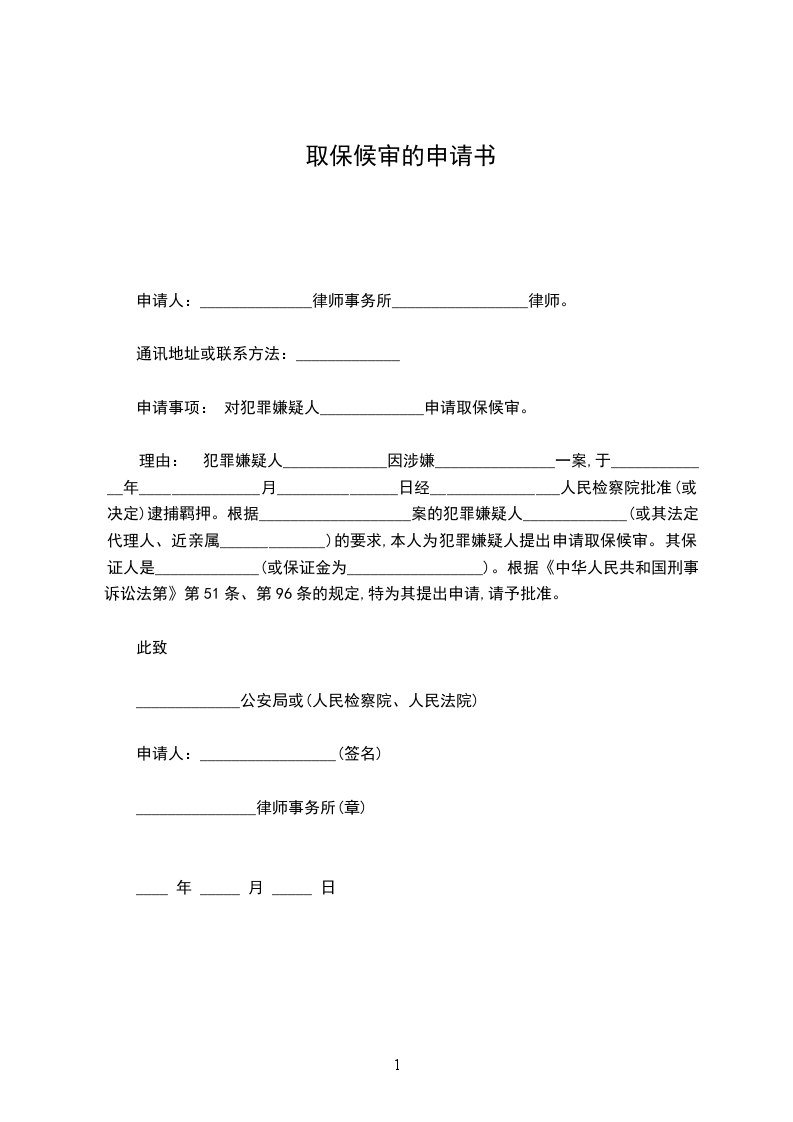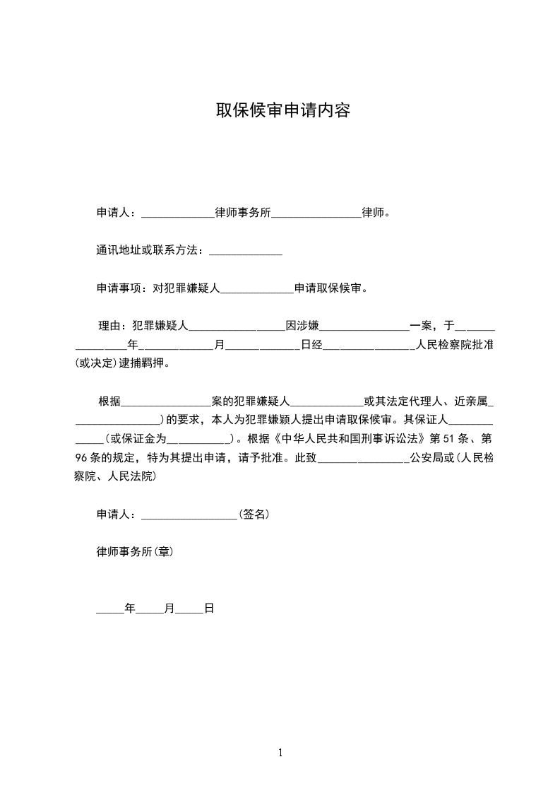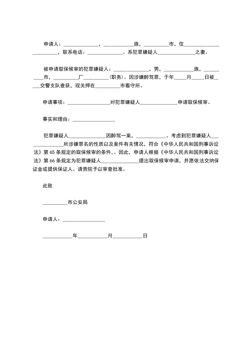 申请事项: 对犯罪嫌疑人_____________申请取保候审。
