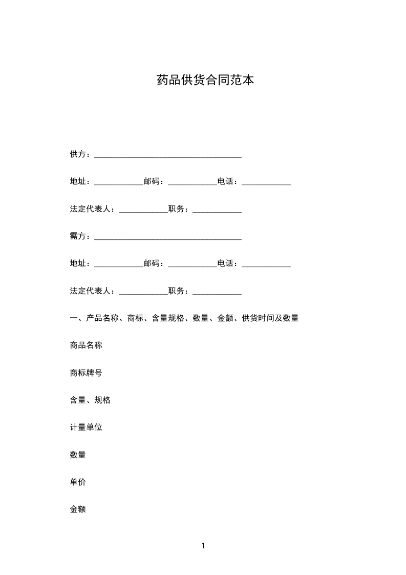 一、产品名称、商标、含量规格、数量、金额、供货时间及数量