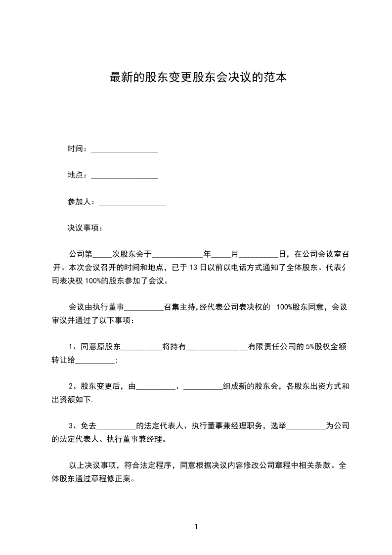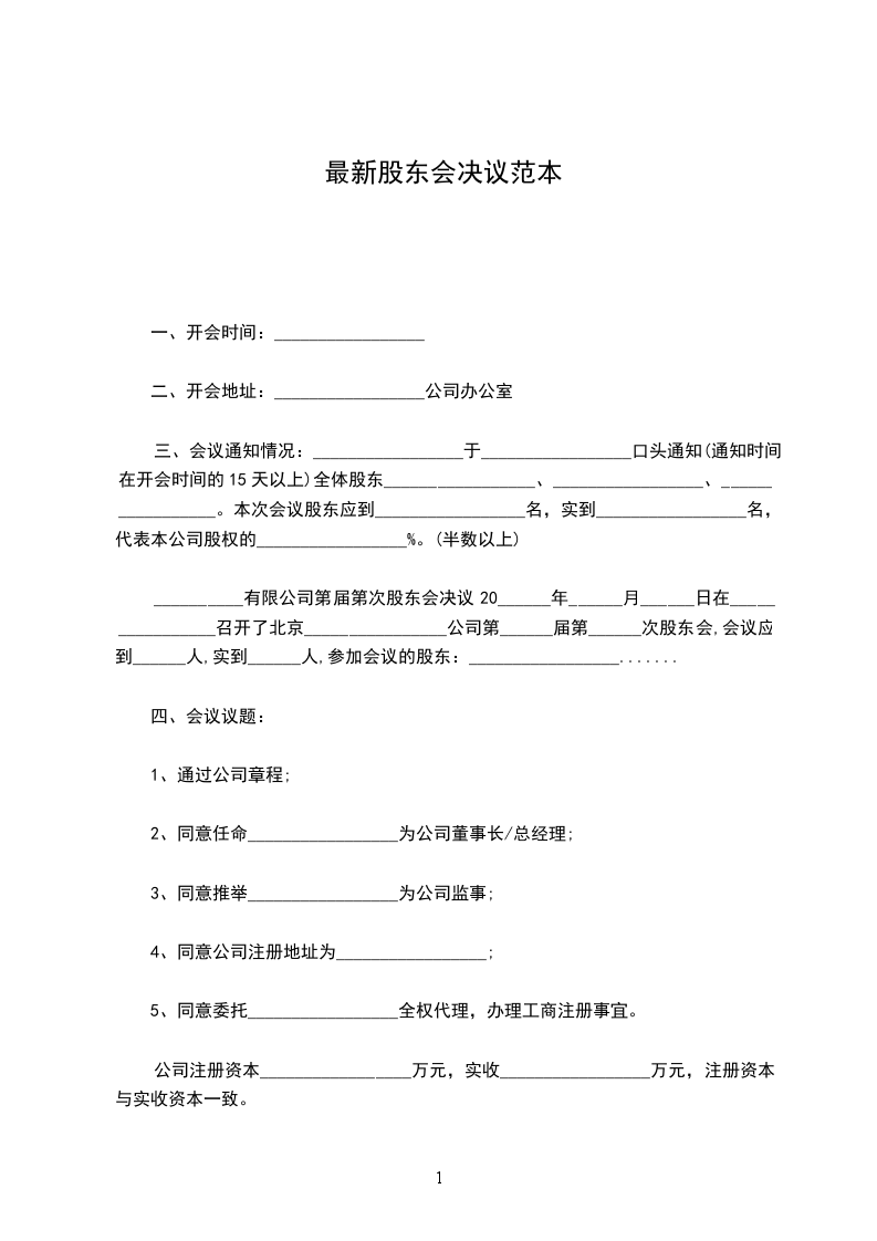 __________有限公司第届第次股东会决议20______年______月______日在________________召开了北京________________公司第______届第______次股东会,会议应到______人,实到______人,参加会议的股东:_________________.......