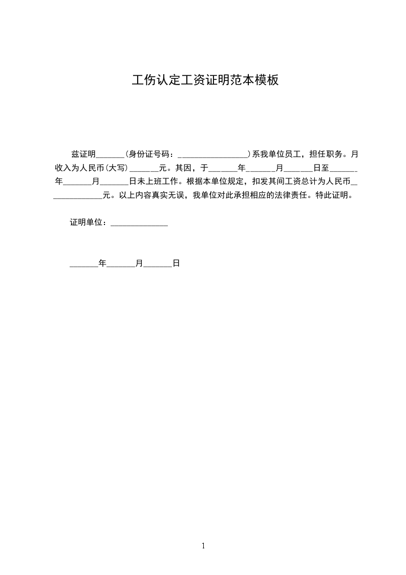 兹证明_______(身份证号码:_________________)系我单位员工,担任职务。月收入为人民币(大写)_______元。其因,于_______年_______月_______日至_______年_______月_______日未上班工作。根据本单位规定,扣发其间工资总计为人民币______________元。以上内容真实无误,我单位对此承担相应的法律责任。特此证明。