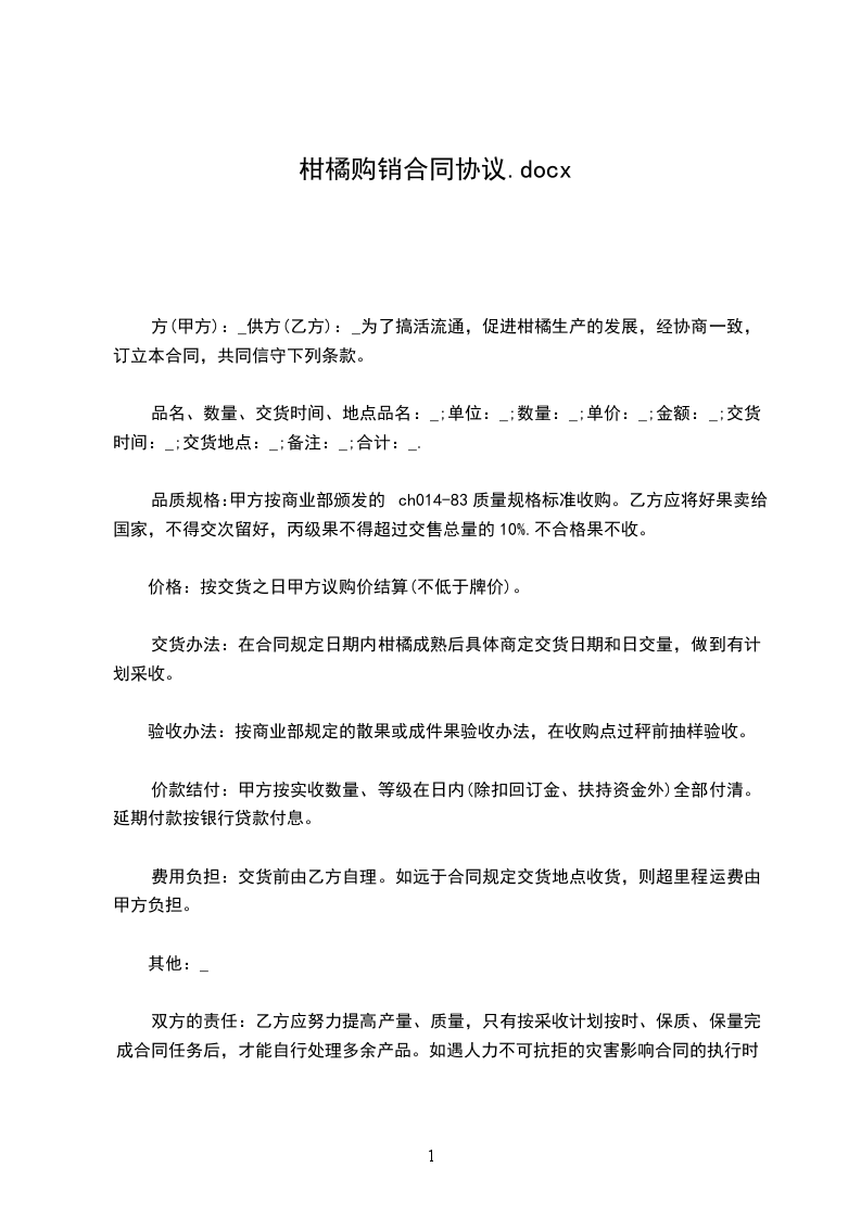 为了搞活流通,促进柑橘生产的发展,经协商一致,订立本合同,共同信守下列条款。
