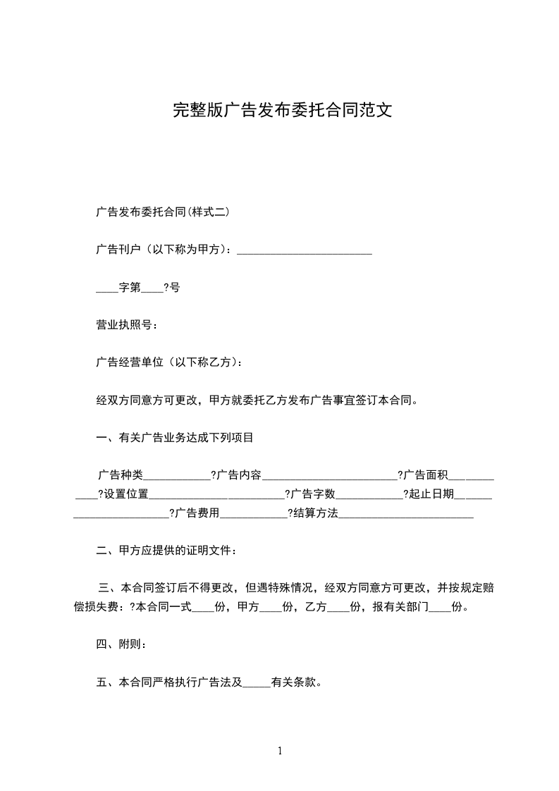 广告发布委托合同(样式二)