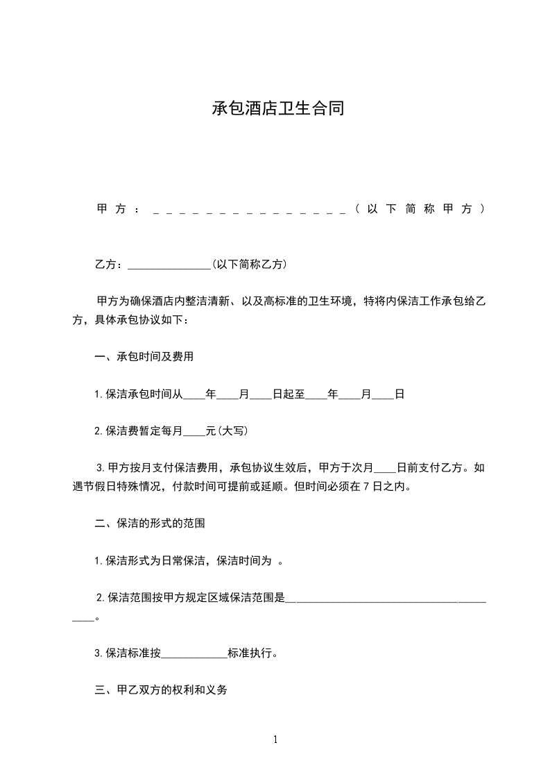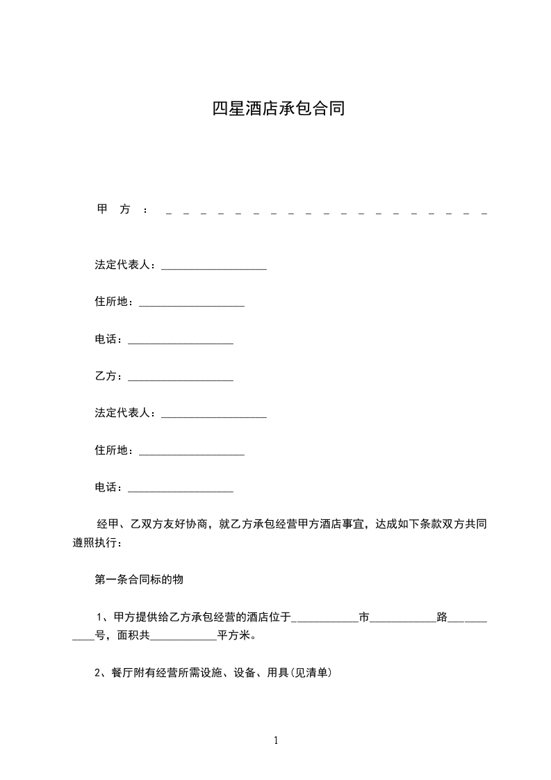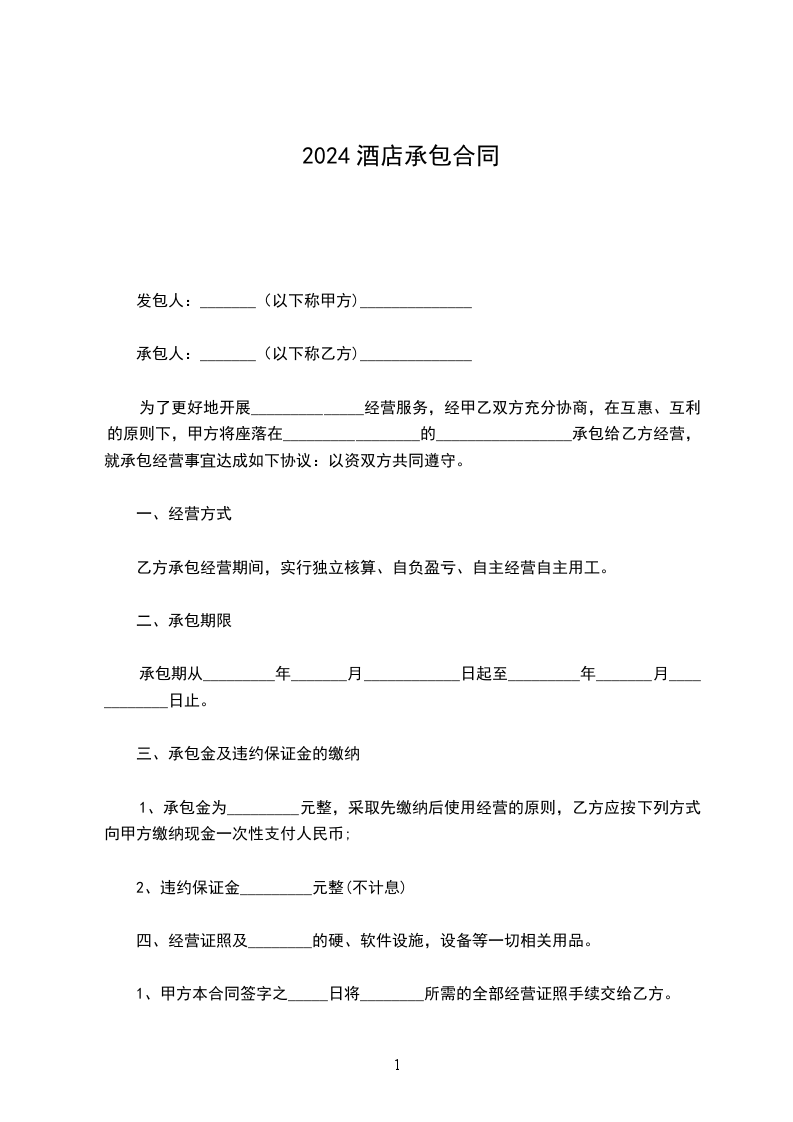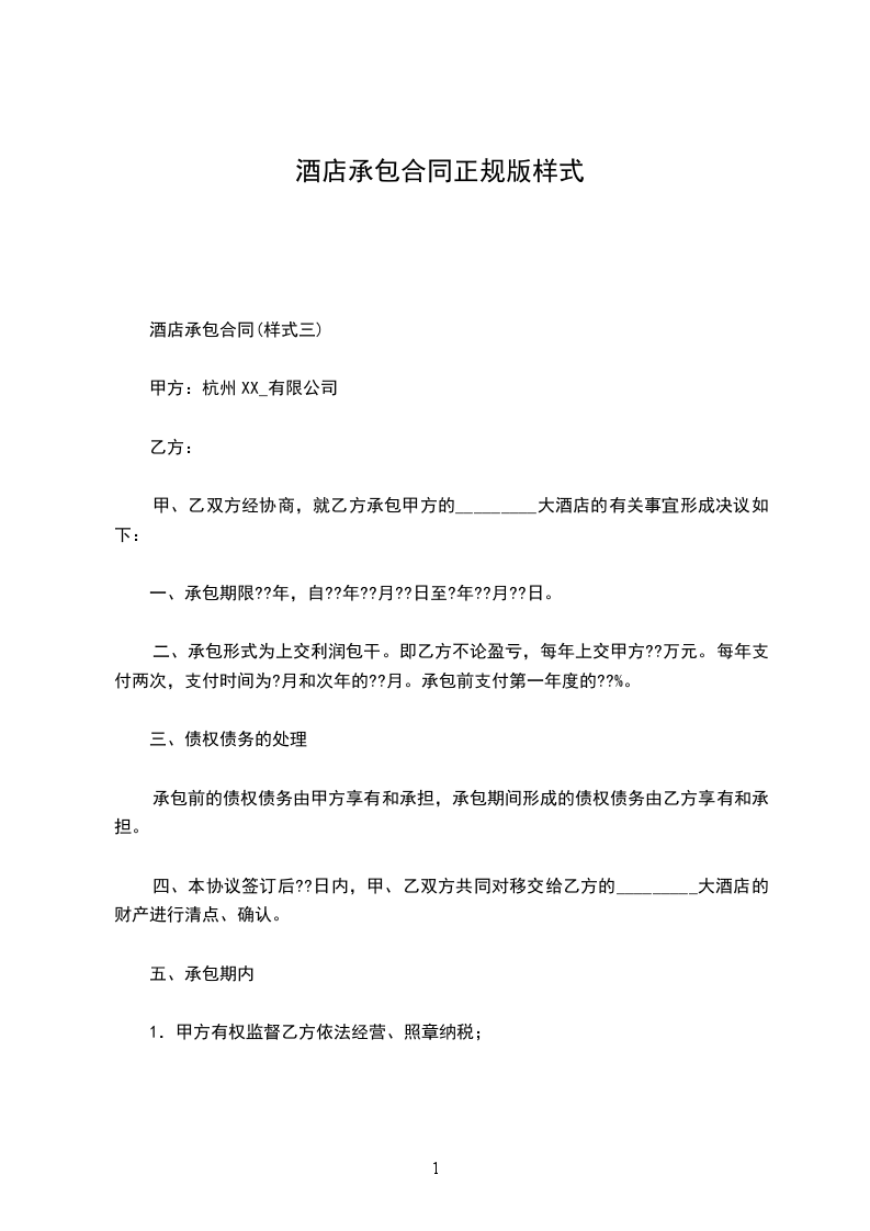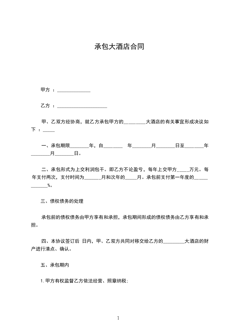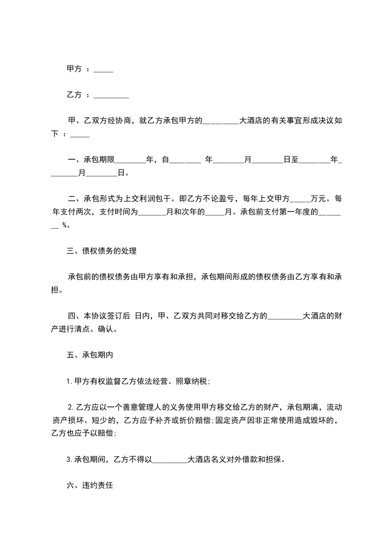 甲、乙双方经协商,就乙方承包甲方的_________大酒店的有关事宜形成决议如下: