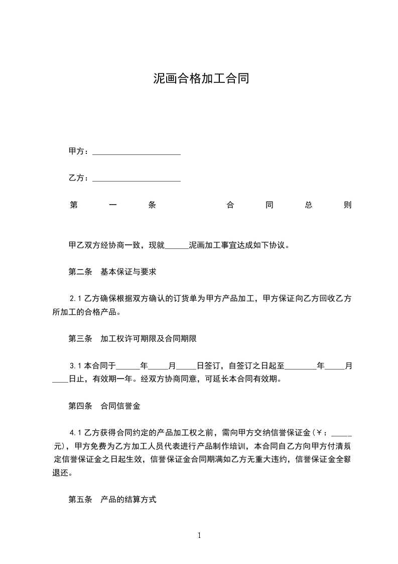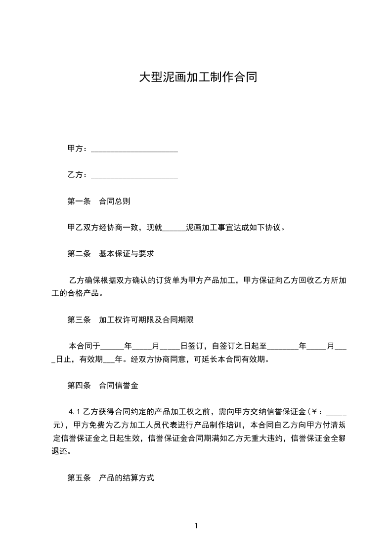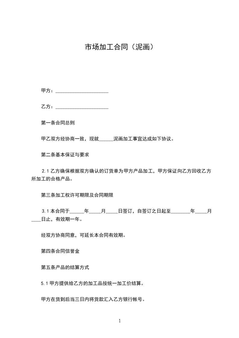 甲乙双方经协商一致,现就______泥画加工事宜达成如下协议。