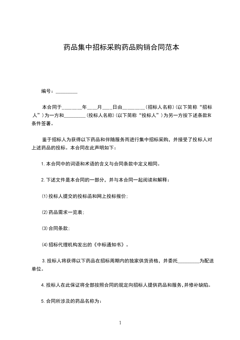 鉴于招标人为获得以下药品和伴随服务而进行集中招标采购,并接受了投标人对上述药品的投标。本合同在此声明如下: