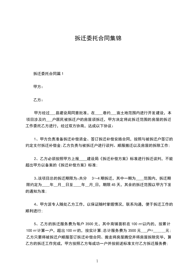 甲方委托乙方处理甲方因建设需要之拆迁事宜,包括对被拆迁户的补偿,安置等一切与拆迁相关的事项。
