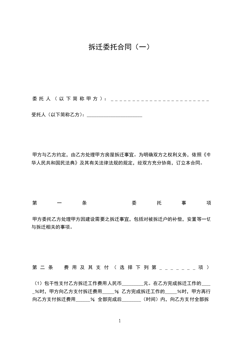甲方与乙方约定,由乙方处理甲方房屋拆迁事宜。为明确双方之权利义务,依照《中华人民共和国民法典》及其有关法律法规的规定,经双方充分协商,订立本合同。