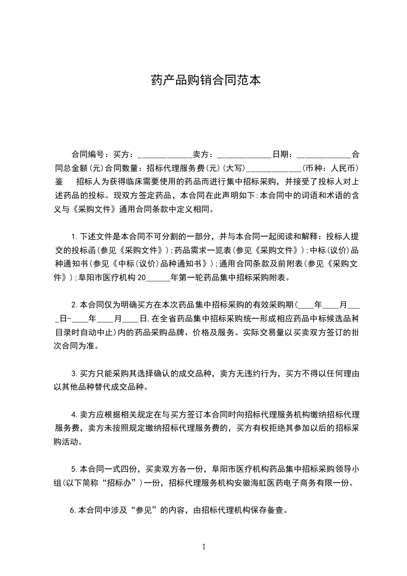 鉴于招标人为获得以下药品和伴随服务而进行集中招标采购,并接受了投标人对上述药品的投标。本合同在此声明如下: